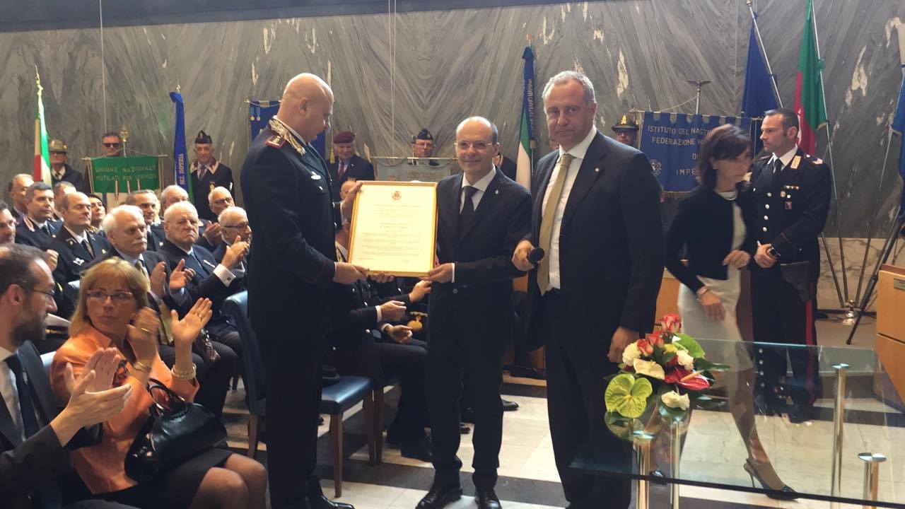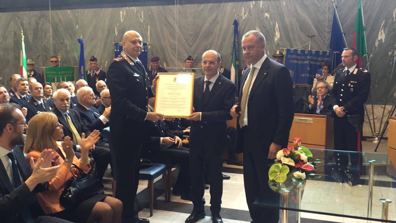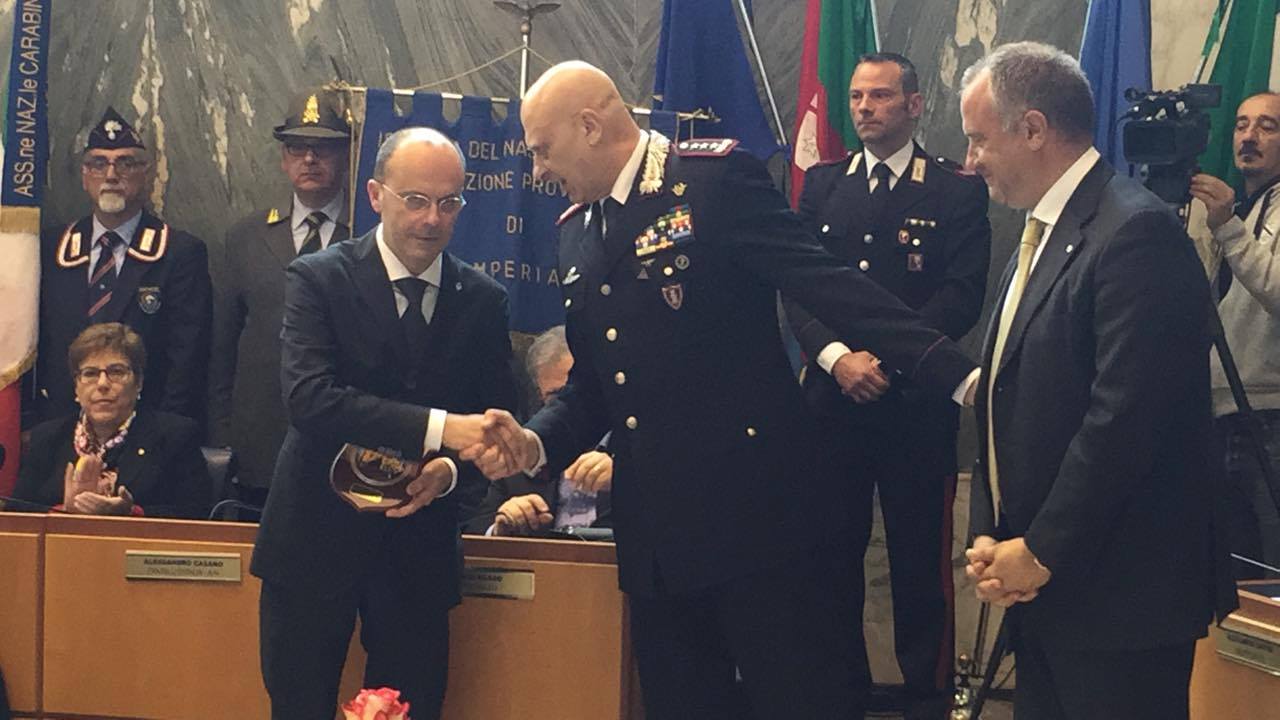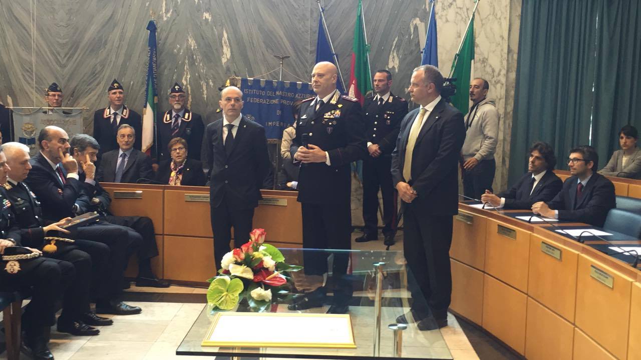 L’Arma dei Carabinieri cittadina onoraria di Imperia. Con un voto unanime, il consiglio comunale del capoluogo, ha conferito la cittadinanza onoraria all’Arma dei Carabinieri in occasione dell’ottantesimo anniversario dell’insediamento dei militari all’interno della caserma Somaschini, attuale sede del Comando Provinciale. A presiedere l’assise partecipata dalle massime autorità civili e militari della provincia, il presidente del consiglio Diego Parodi che dopo un breve intervento ha passato la parola al sindaco di Imperia Carlo Capacci.