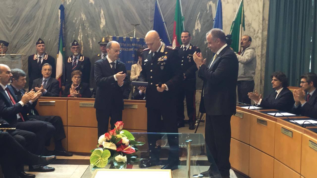 Come il sindaco ed il presidente del consiglio Parodi hanno accennato dal bicentenario in poi ci sono state alcune cerimonie come queste in Italia, ce ne sono state parecchie. Questo riconoscimento forte della cittadinanza all’Arma dei Carabinieri per noi è motivo di orgoglio. È motivo però anche di preoccupazione, perchè quello che abbiamo fatto fino ad oggi non solo dobbiamo continuare a farlo, ma dovremmo anche cercare anche di migliorare. Quando la popolazione ci riconosce con questi attestati e tante altre attestazioni il suo plauso per noi vuol dire impegnarsi ancora di più.