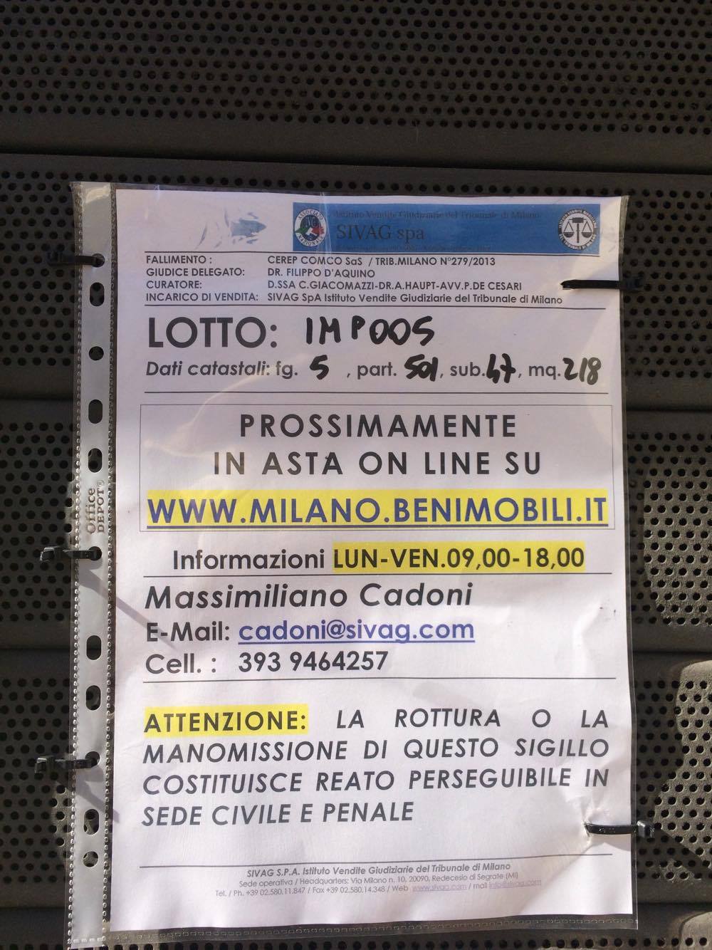 La società titolare dell’immobile, la Cerep Comco Sas è stata dichiarata fallita dal tribunale di Milano nel 2013 e dopo tre anni i beni immobili sono finiti all’asta. Solo una cartoleria è ancora attiva nel complesso di negozi, 218 mq di superficie, che comprende oltre a quelli di via Amendola anche quelli posteriori che si affacciano su via Palestro.