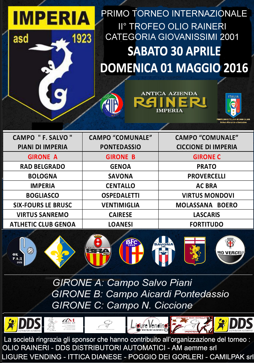 Per la leva Pulcini 2005 di mister Vacca,squadra a 9,impegno a Sanremo sabato 30 aprile per la finale provinciale della manifestazione “Sei Bravo a… ” organizzato dall’Unione Sanremo;invece la gara della squadra a 7 di Franco Valle contro il GolfoDianese e’ stata rinviata a data da destinarsi.