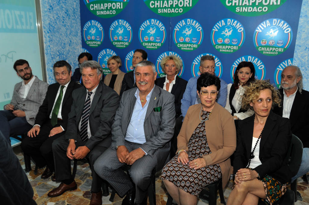 Diano Marina – Presentata questa mattina al point elettorale la lista “Viva Diano” del sindaco uscente Giacomo Chiappori sostenuta dalla Lega Nord, Forza Italia e Fratelli d`Italia. Due gli assenti eccellenti: l’assessore allo sport e demanio Francesco Bregolin e il consigliere con delega alle frazioni e innovazione tecnologica Mattia Camiglia. Entrambi avrebbero lasciato per impegni lavorativi incompatibili con l’attività politica. Oltre all’avvocato Barbara Feltrin e all’insegnante Barbara Cairo (i loro nomi erano già trapelati, ndr) sono state inserite in lista anche Cristina Sensi, 43 anni imprenditrice agricola, Veronica Brunazzi, 27 anni commerciante, Novara Paola, 63 anni ex dipendente comunale.