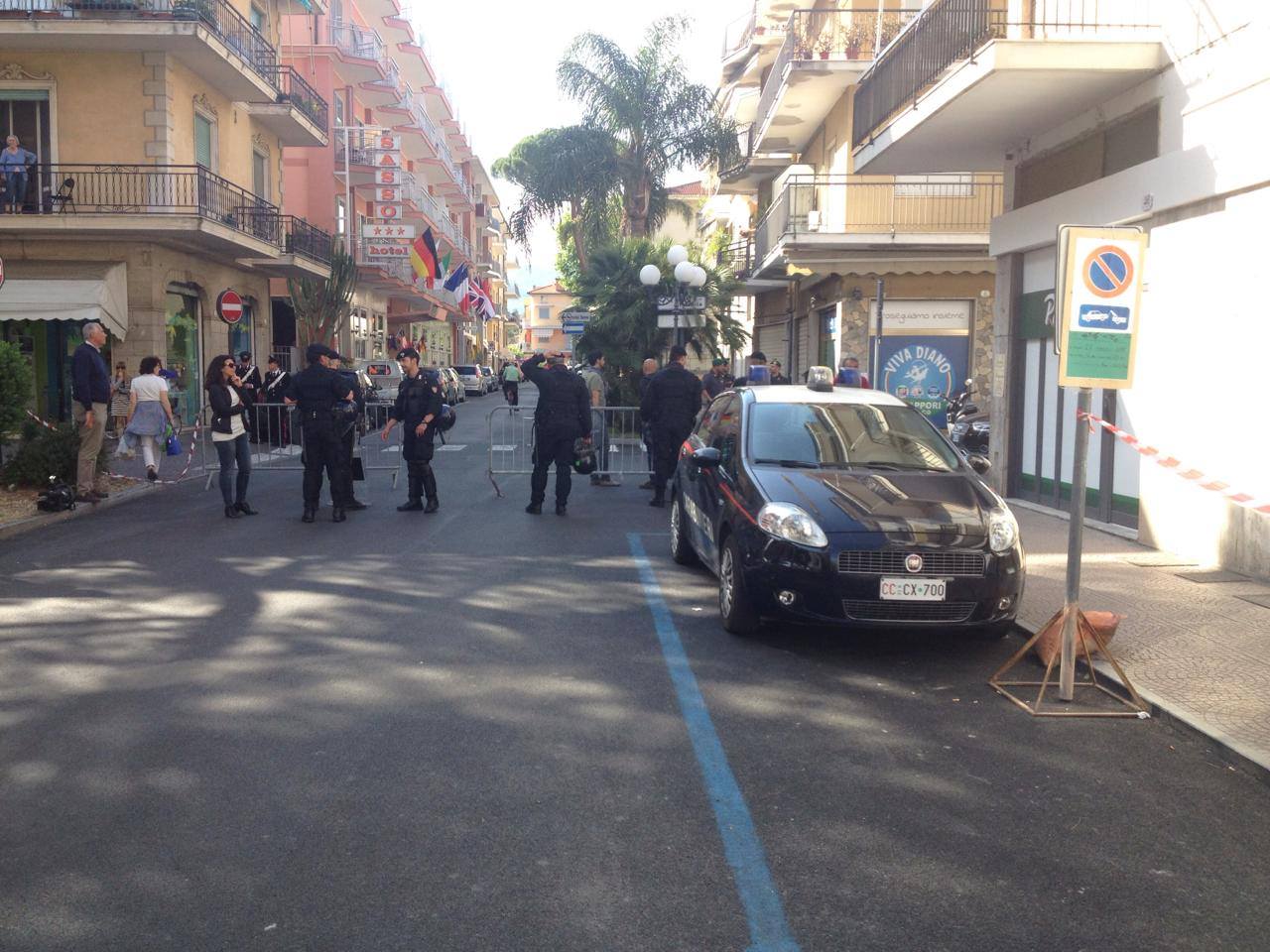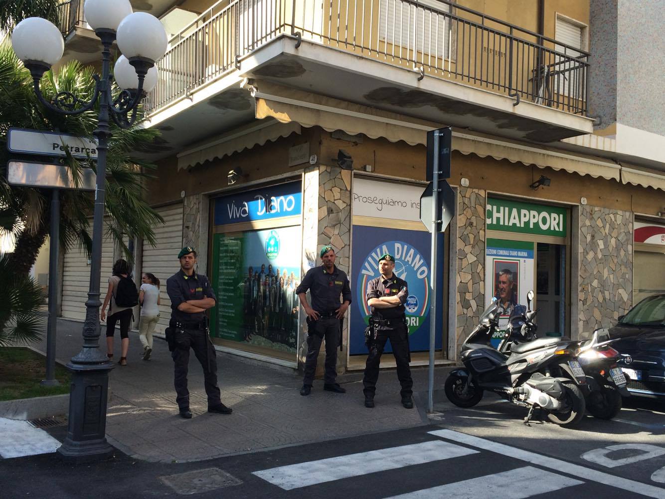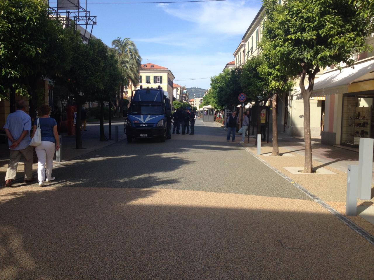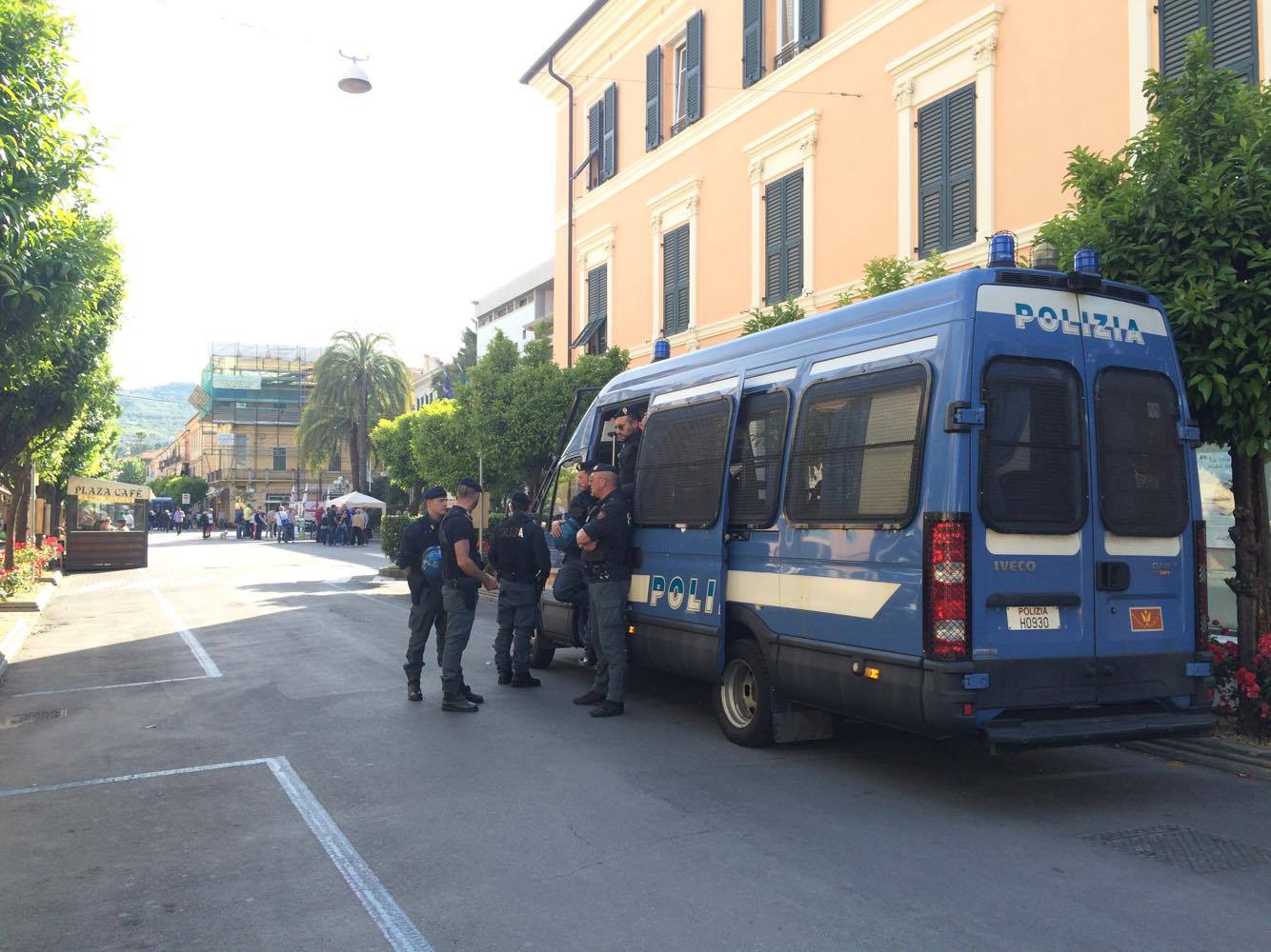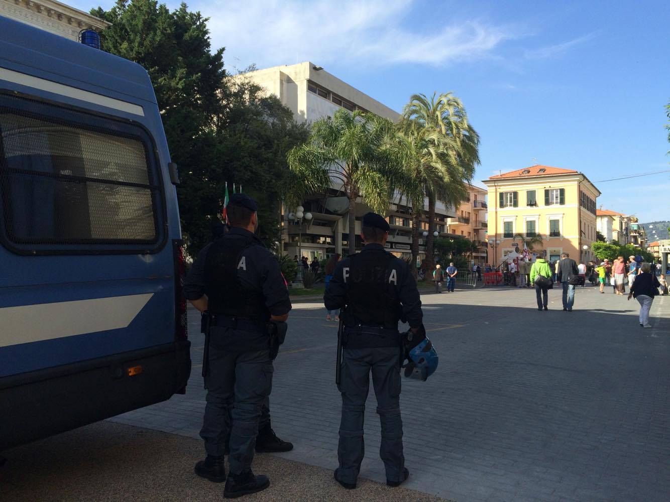 Il centro di Diano Marina blindato per l’arrivo del leader della Lega Nord Matteo Salvini, che terrà un comizio alle ore 18, nella piazza del Comune, a sostegno della candidatura a sindaco di Giacomo Chiappori.