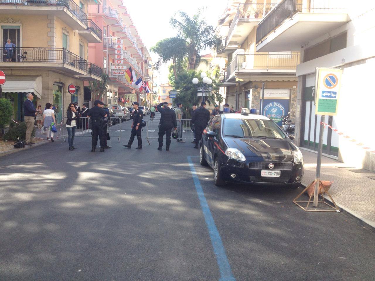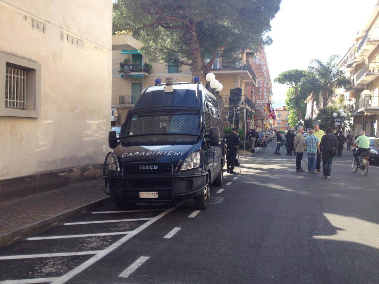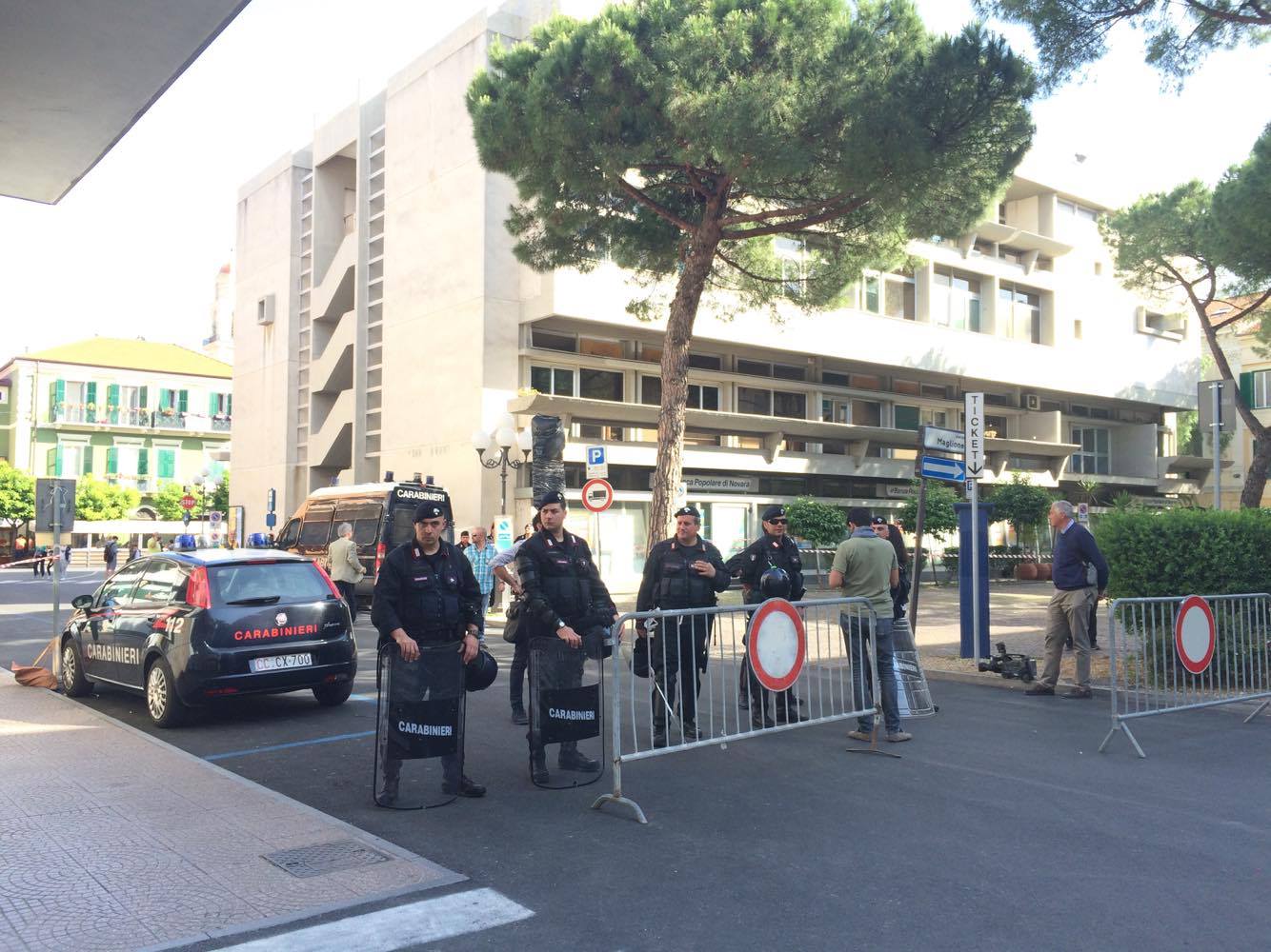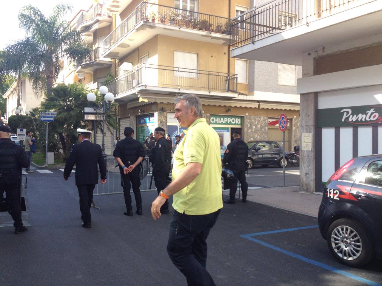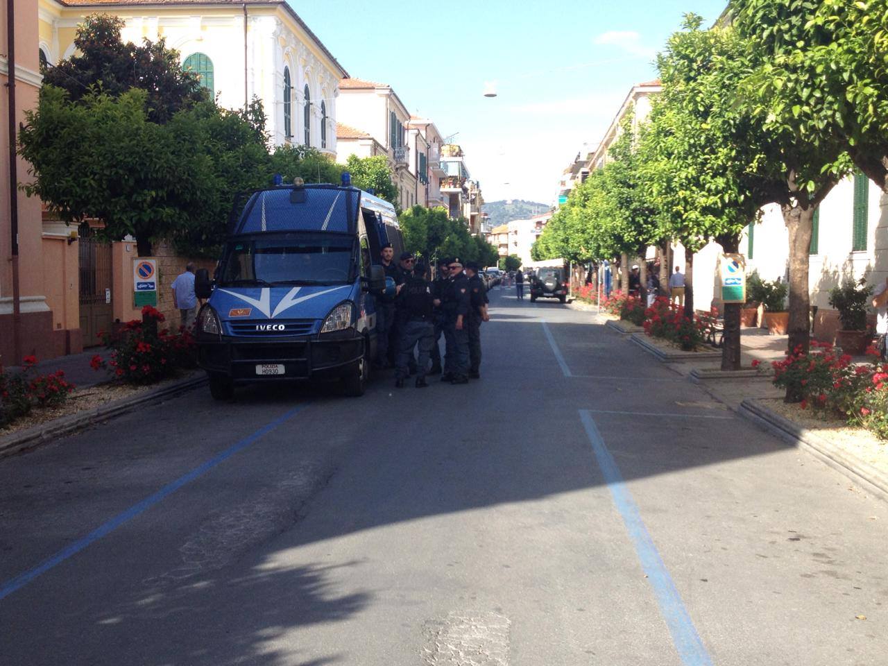 Il centro di Diano Marina blindato per l’arrivo del leader della Lega Nord Matteo Salvini, che terrà un comizio alle ore 18, nella piazza del Comune, a sostegno della candidatura a sindaco di Giacomo Chiappori.