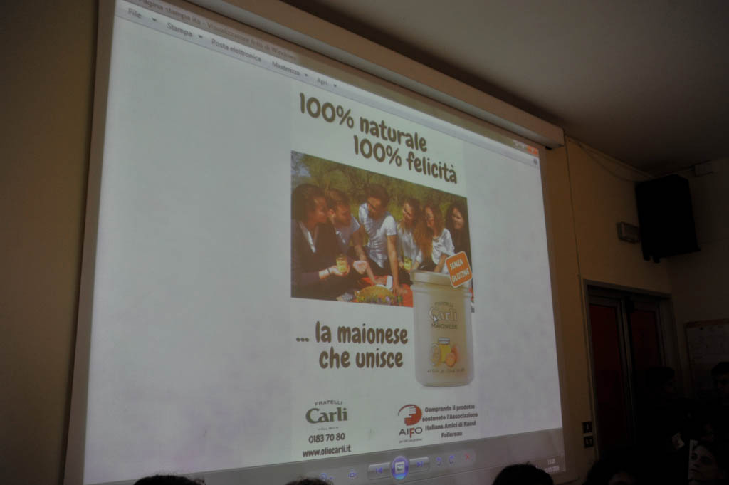 “I ragazzi sono stati messi in contatto con la ditta Carli – spiega la professoressa Amoretti – e in particolare col dottor Motosso, che è uno dei responsabili del reparto marketing, con l’idea di realizzare un indagine di mercato – pubblicità su alcuni prodotti. Abbiamo optato sulla maionese e la crema di nocciola e cacao e quindi i ragazzi hanno realizzato interviste a 70 persone, cercando di capire quali erano i gusti dei consumatori e poi, in base a questo, hanno realizzato un comunicato stampa, con annesse le fotografie, da poter pubblicare sui giornali, ma soprattutto il video che è veramente molto carino e interessante e hanno espresso la loro creatività e la loro bravura. Mi sono stupita anche io del risultato ottenuto, perchè veramente di alta qualità”.