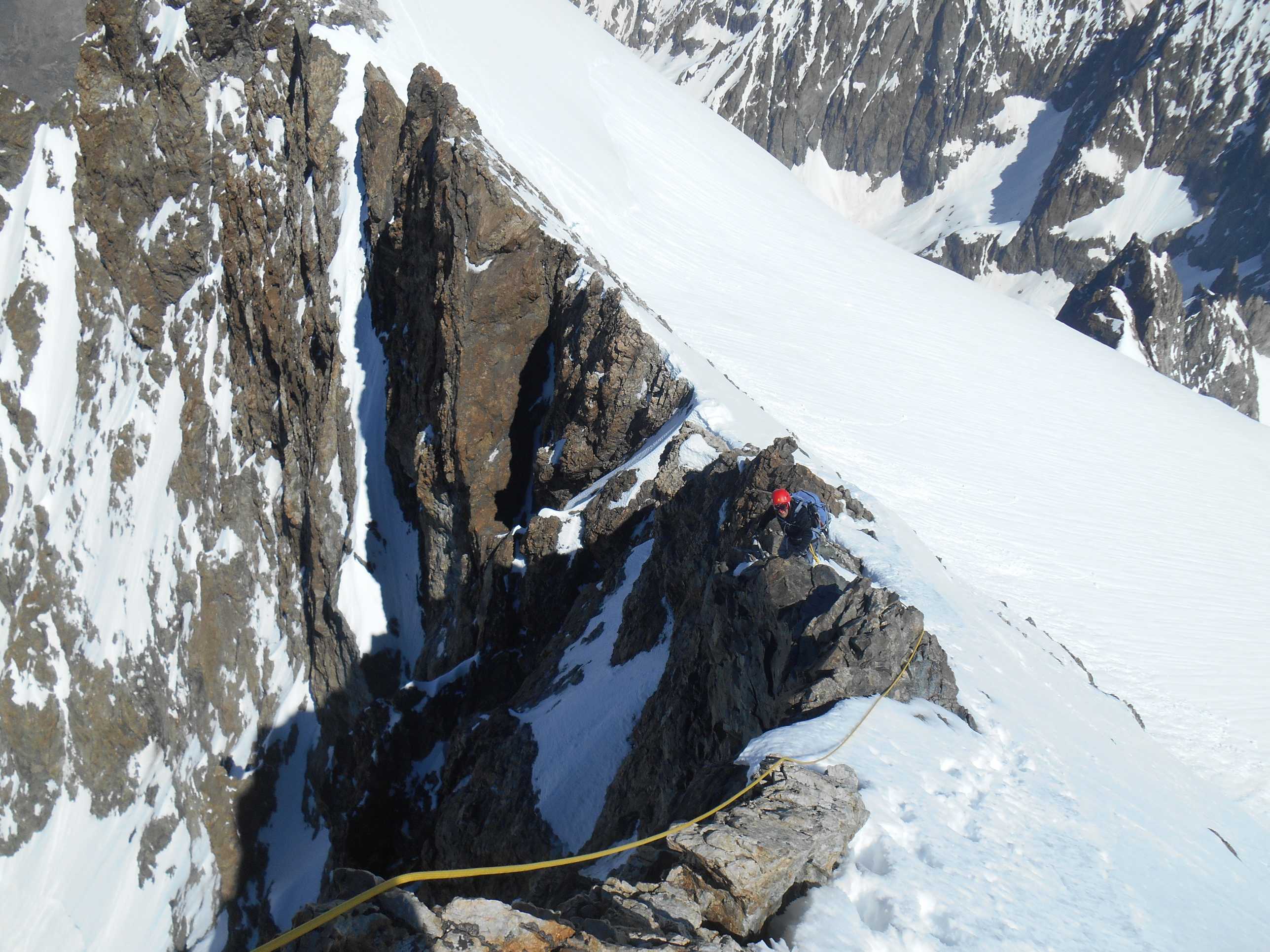 “Questa volta la soddisfazione è doppia – commenta Sciandra da Briancon – Al piccolo, ma importante passo verso quota 41, la metà di tutti gli 82 delle Alpi, si aggiunge quella per essere riusciti a compiere un’ascensione in condizioni difficili. La tantissima neve presente in alta quota, abbinata alle temperature africane di questi giorni, rendono la situazione complicata. Molte vette sono off limits e i ghiacciai chiusi. La Barre des Ecrins non faceva eccezione, tanto è che abbiamo dovuto tracciare l’intera via di salita, dalla terminale prima della Brèche Lory e lungo tutta la Cresta Ovest. In questo momento la difficoltà tecnica di questa montagna è valutabile intorno al grado D, rispetto all’AD di quando la stessa è in condizioni ottimali”.
