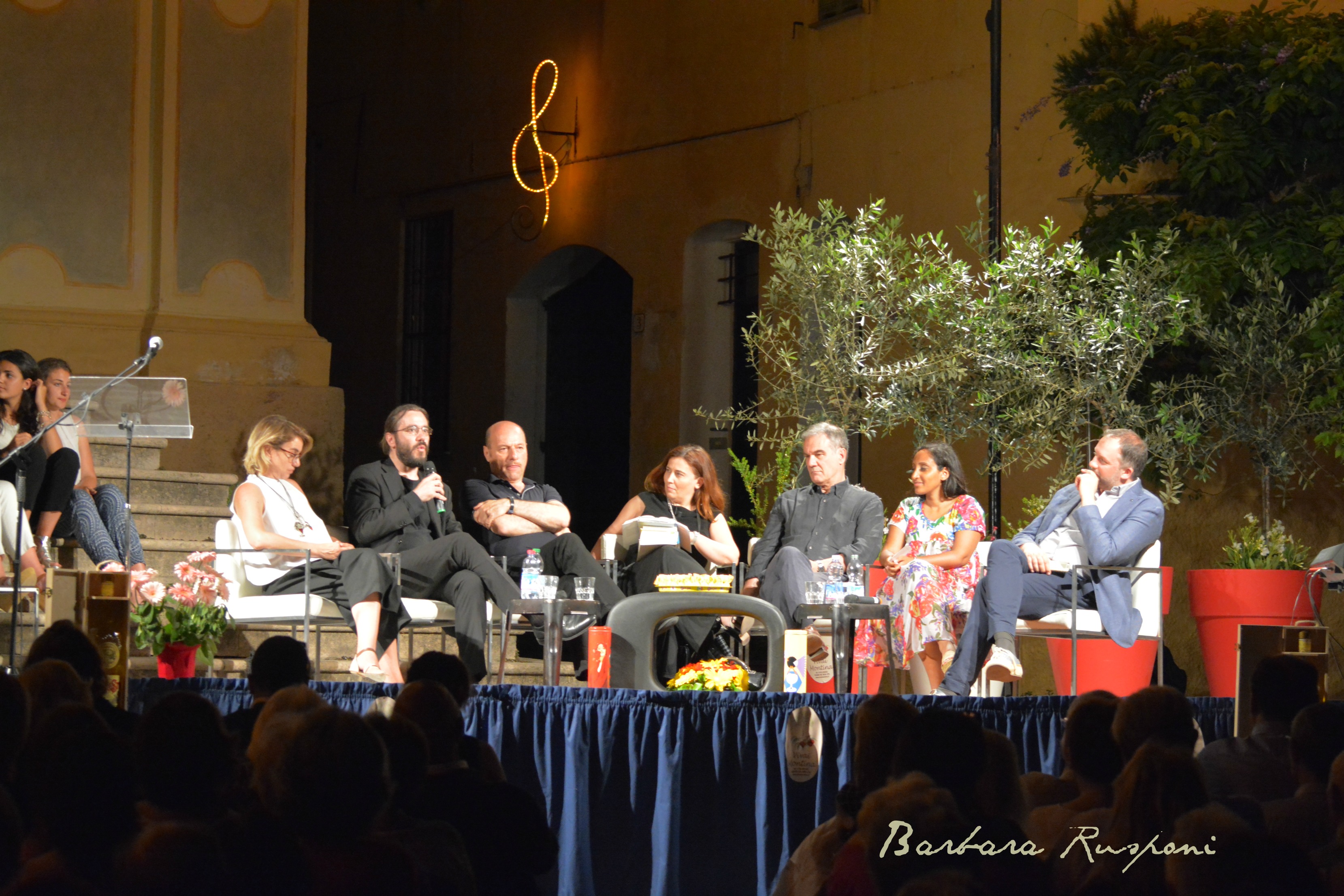 I cinque scrittori finalisti, intervistati da Alessandra Tedesco di Radio 24, al pianoforte Diego Genta, letture dell’ attore Franco La Sacra, studenti del Liceo Vieusseux di Imperia e del Liceo Cassini di Sanremo nella giuria del Premio Strega Giovani. Progetto ideato e curato da Francesca Rotta Gentile.