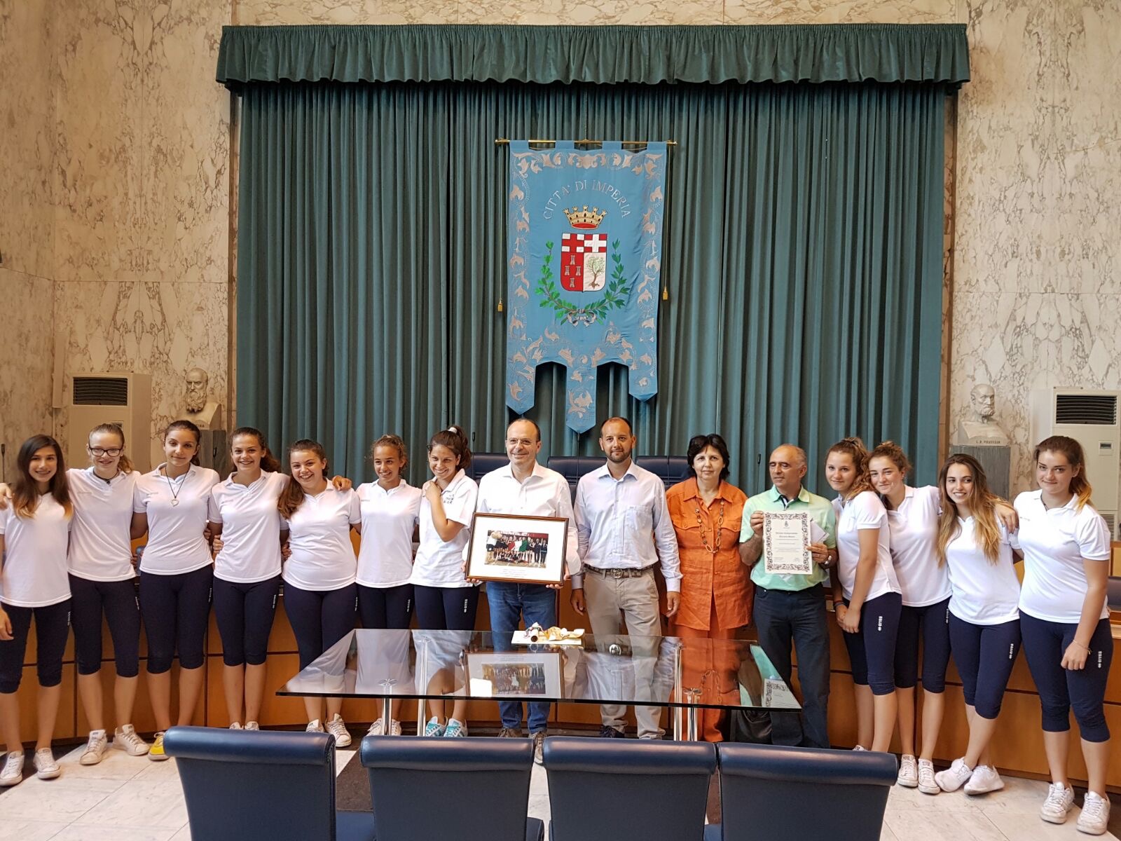 Ieri mattina, sabato 25 giugno, il sindaco di Imperia, Carlo Capacci, e l’assessore allo Sport, Simone Vassallo, hanno ricevuto nella sala consiliare la squadra femminile di pallavolo dell’istituto comprensivo Sauro, che ai campionati studenteschi di Levico Terme ha conquistato il titolo nazionale, imponendosi contro la Puglia 2-0.
