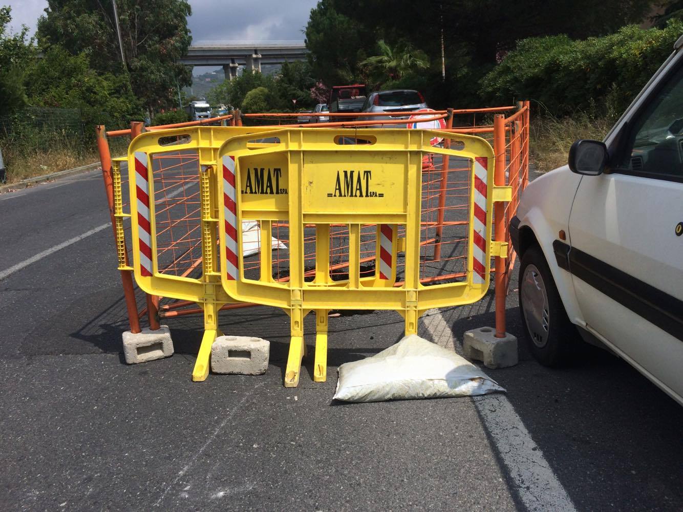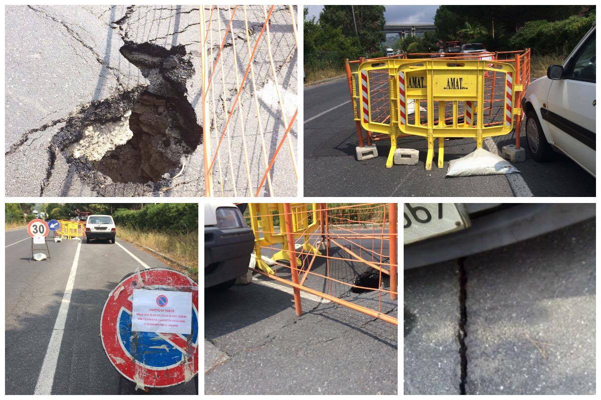 Vere e proprie voragini si sono aperte in via Acquarone a seguito del cedimento della condotta fognaria. La zona è stata transennata dall’Amat che, nei prossimi giorni, provvederà all’intervento di riparazione della condotta, messa in sicurezza e ripristino del manto stradale.