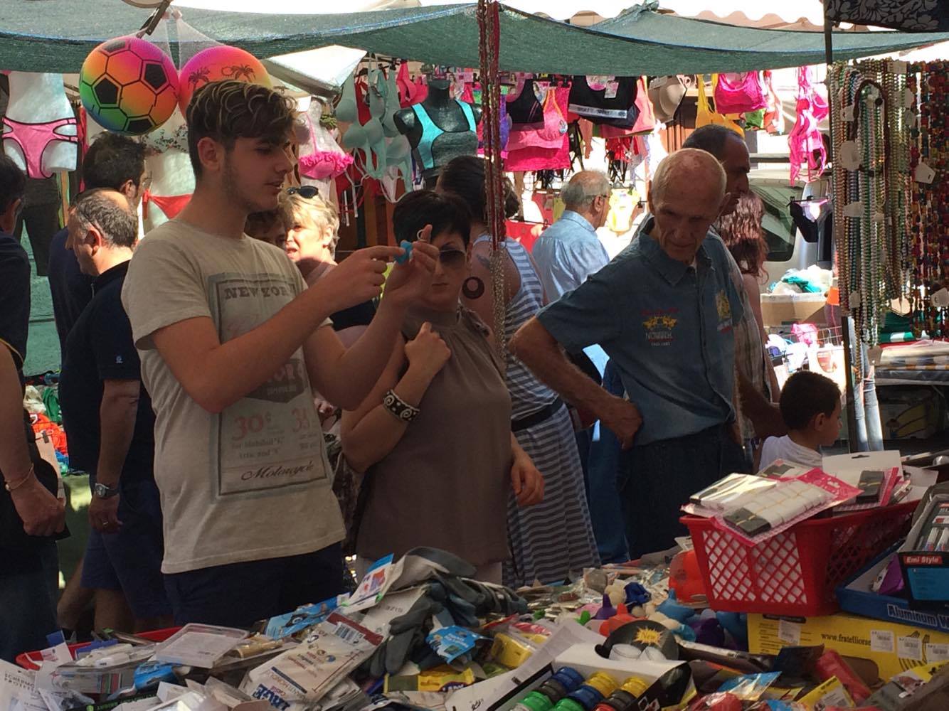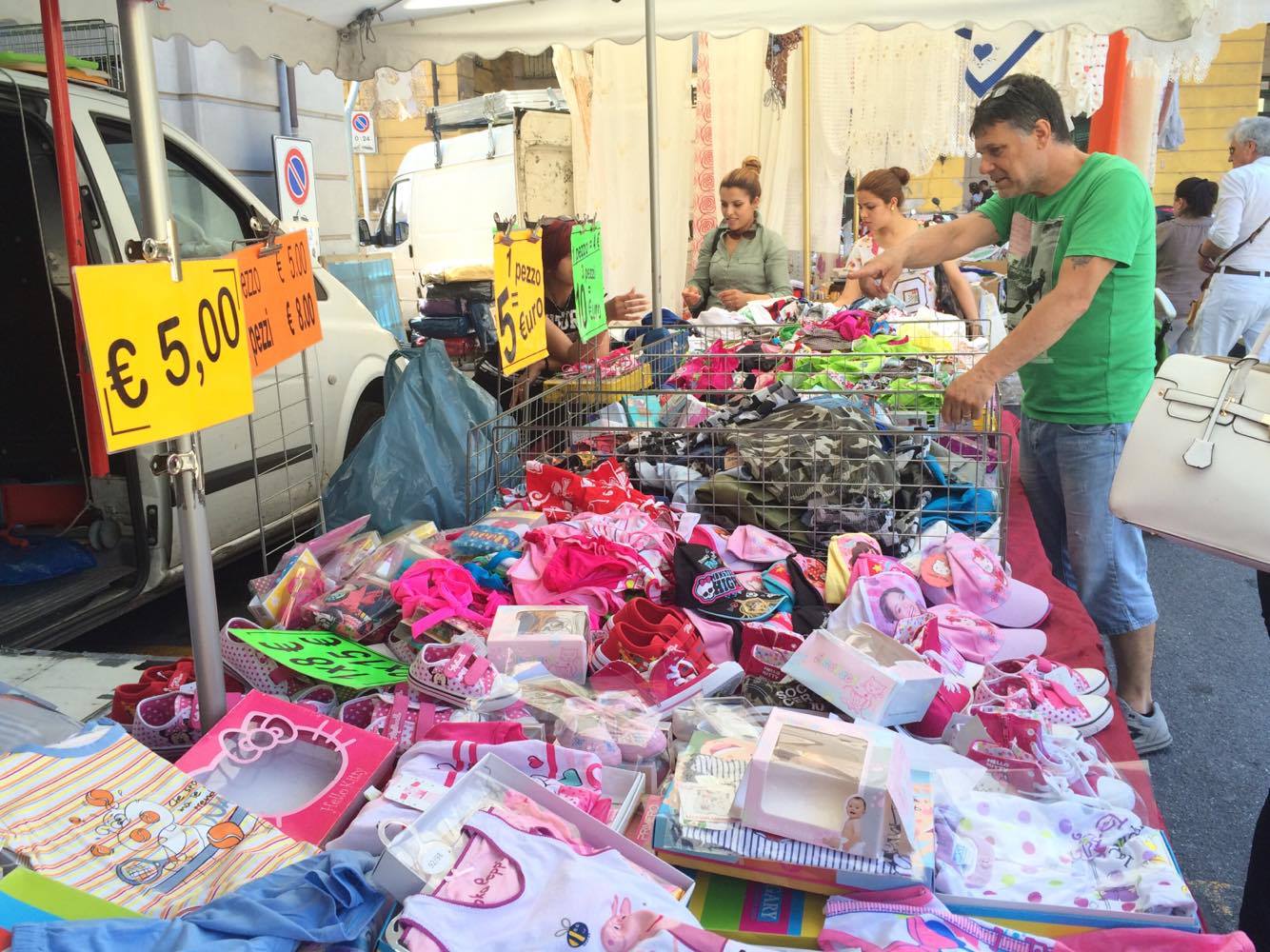 Sui banchi di tutto un pò, dall’abbigliamento agli alimentari, sino a giochi per bambini e agli oggetti per la casa.
