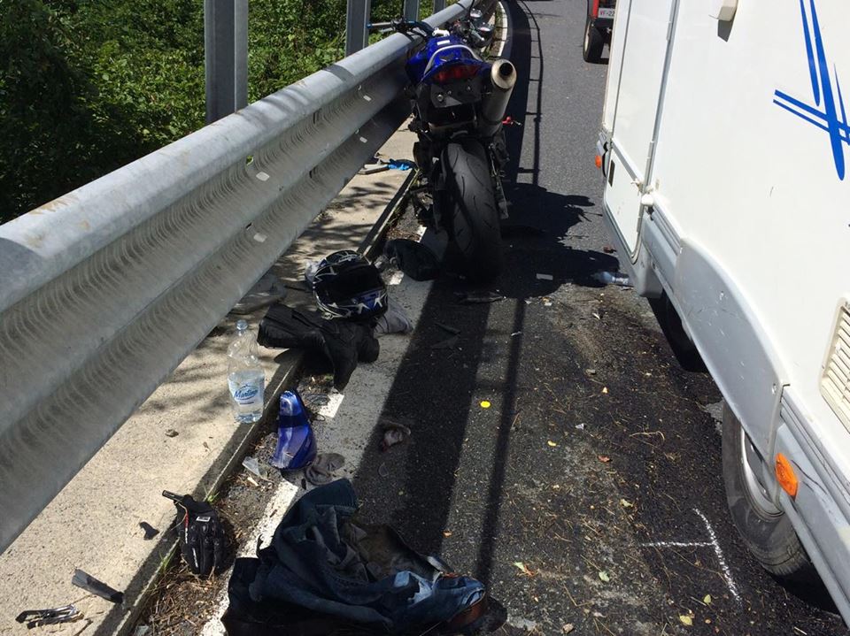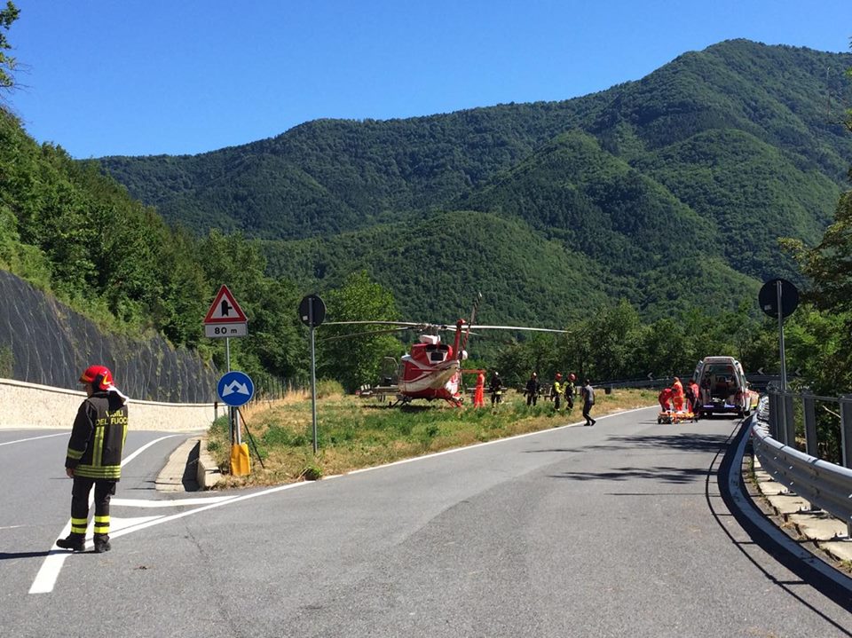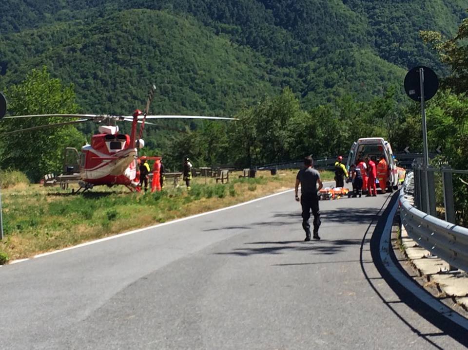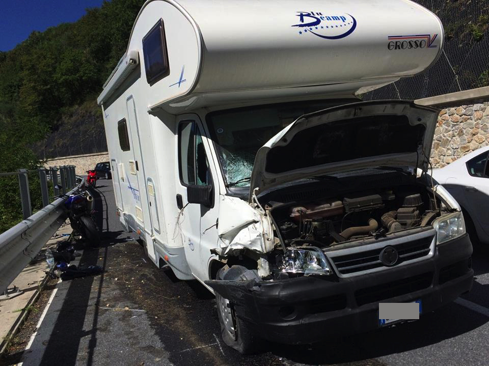 Pornassio. Gravissimo incidente questo pomeriggio sulla statale 28 all’altezza di Acquetico. Una moto, guidata da un uomo W.Z.F. di 48 anni residente a Ospedaletti si è scontrato frontalmente contro un camper, con a bordo una famiglia sempre della città dei fiori che viaggiava in direzione opposta, verso il mare. Secondo una prima ricostruzione dell’incidente sembra che il motociclista, che viaggiava assieme ad altri motociclisti, a bordo di una Honda Hornet, abbia preso la curva troppo larga invadendo la corsia opposta e scontrandosi contro il camper che non ha potuto evitarla.