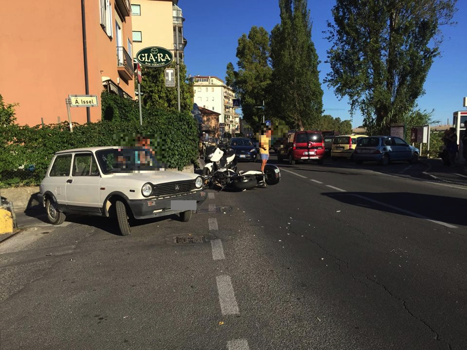 IMPERIA. Scontro auto moto attorno alle 18.30 di questo pomeriggio in via Argine Sinistro a Oneglia. Una moto, una Triumph Tiger guidata da un uomo di circa 55 anni ha impattato contro un’auto intenta a svoltare a sinistra all’altezza dell’Eurospin. La moto, secondo la testimonianza della donna alla guida della Suzuki, non avrebbe visto la freccia e in fase di sorpasso sarebbe andata a sbattere contro la parte anteriore sinistra dell’auto.