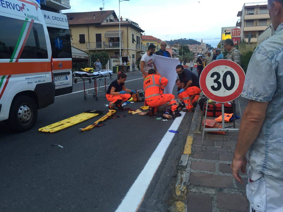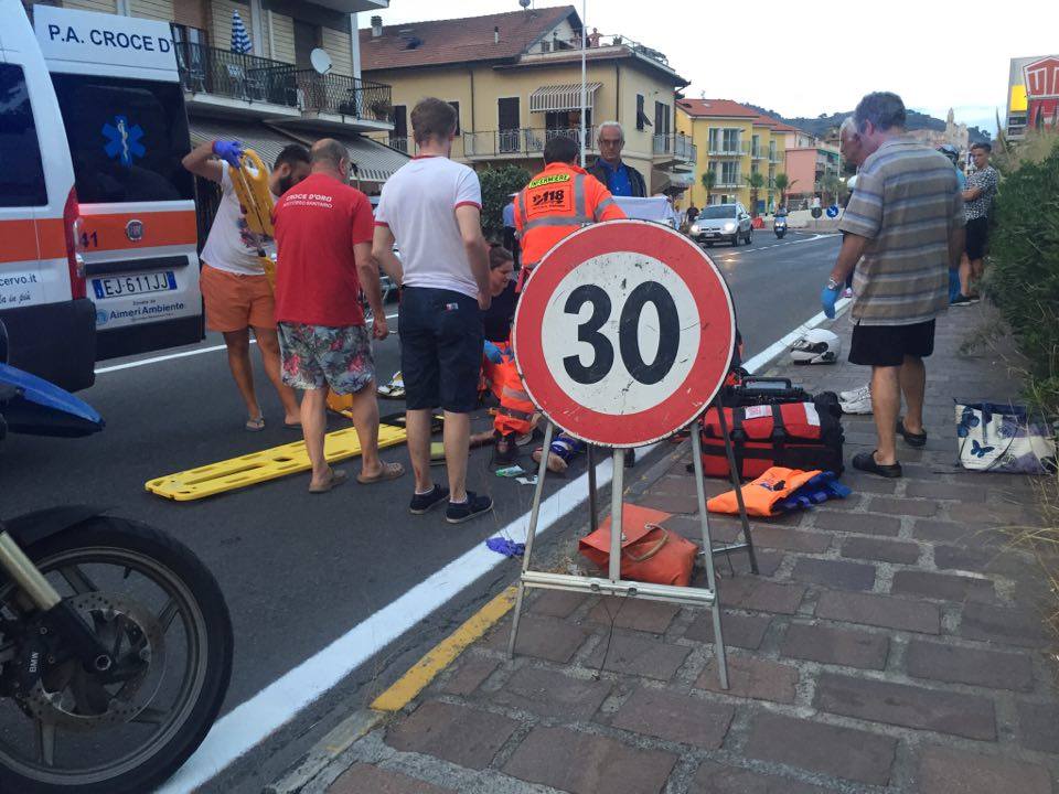 L’impatto è stato violentissimo, tanto che la donna è stata trascinata per diversi metri prima che la moto terminasse la sua corsa. Sul posto è intervenuta un’ambulanza della Croce d’Oro di Cervo, oltre all’automedica del 118.