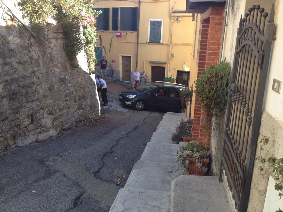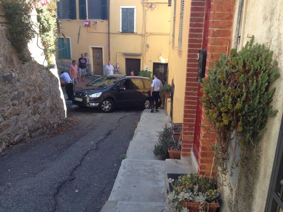 Disavventura questo pomeriggio per un turista tedesco, rimasto bloccato con la propria auto in via Ferro al Parasio. Nel dettaglio, l’uomo ha imboccato via Silorata, probabilmente senza vedere il cartello che indica una strada senza sbocco, e una volta arrivato in fondo alla via, invece di fare retromarcia, ha provato a fare inversione in via Ferro, strada pedonale con gradini, rimanendo incastrato.
