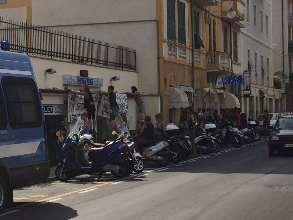 “Beppe e Alessia Liberi. Open the Borders”. “L’unica frontiera è tra sfruttati e sfruttatori!”. Due striscioni campeggiano davanti al Tribunale di Imperia, issati dai No Borders per chiedere la liberazione degli attivisti arrestati dalle forze dell’ordine nel corso dei tafferugli verificatisi nel weekend a Ventimiglia. Questa mattina, infatti, è in programma il processo per direttissima di uno dei “No border”.