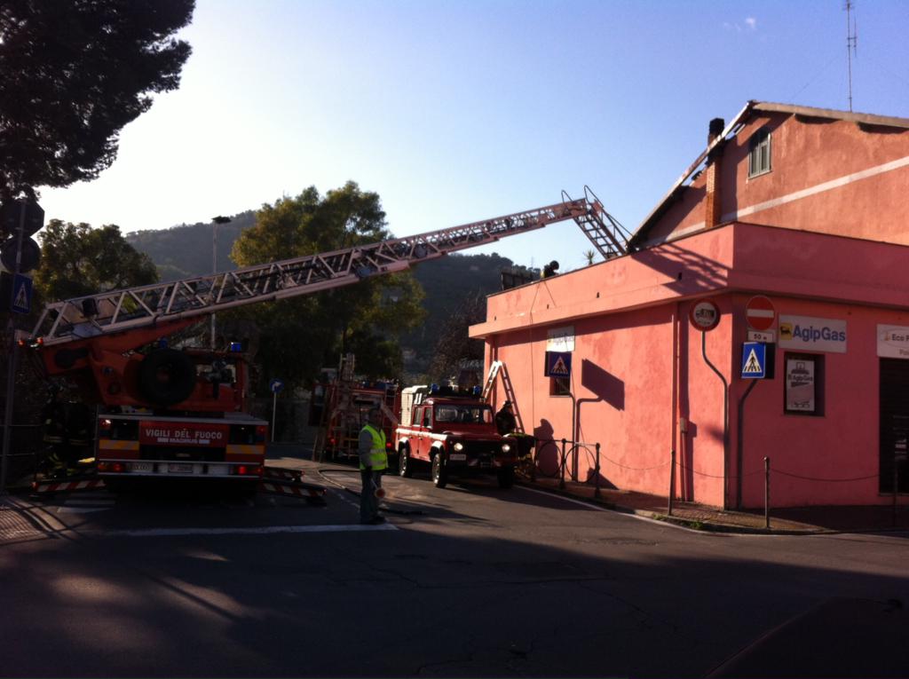 Parte del tetto di un’abitazione in via Nazionale, allo svincolo con via Andreoli, dalla rotonda dell’autostrada di Oneglia, ha preso fuoco oggi pomeriggio intorno alle 15. La dinamica non è ancora stata accertata, ma probabilmente le fiamme sono divampate per via di qualche problema con la canna fumaria della casa.