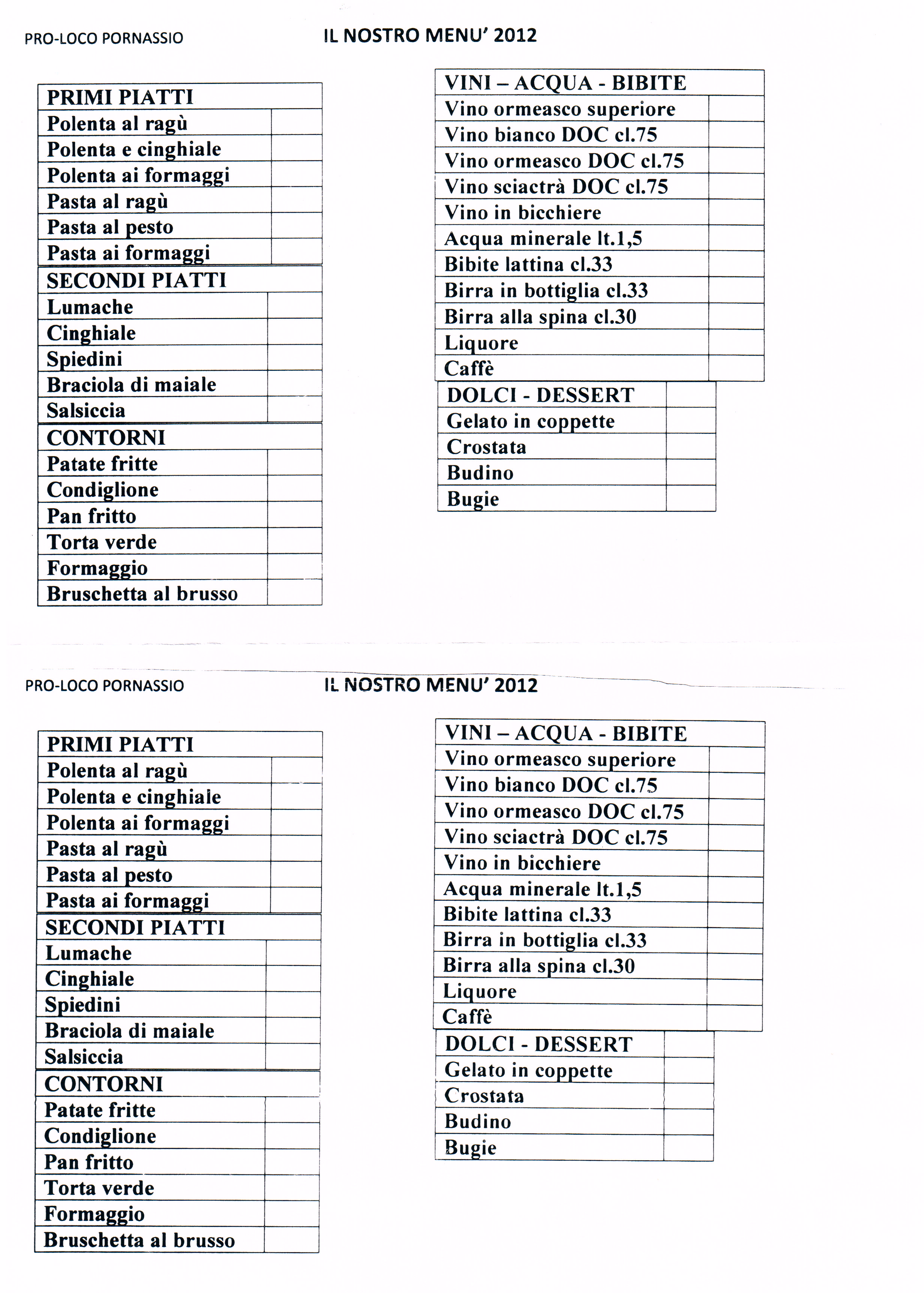 Menù e locandina: