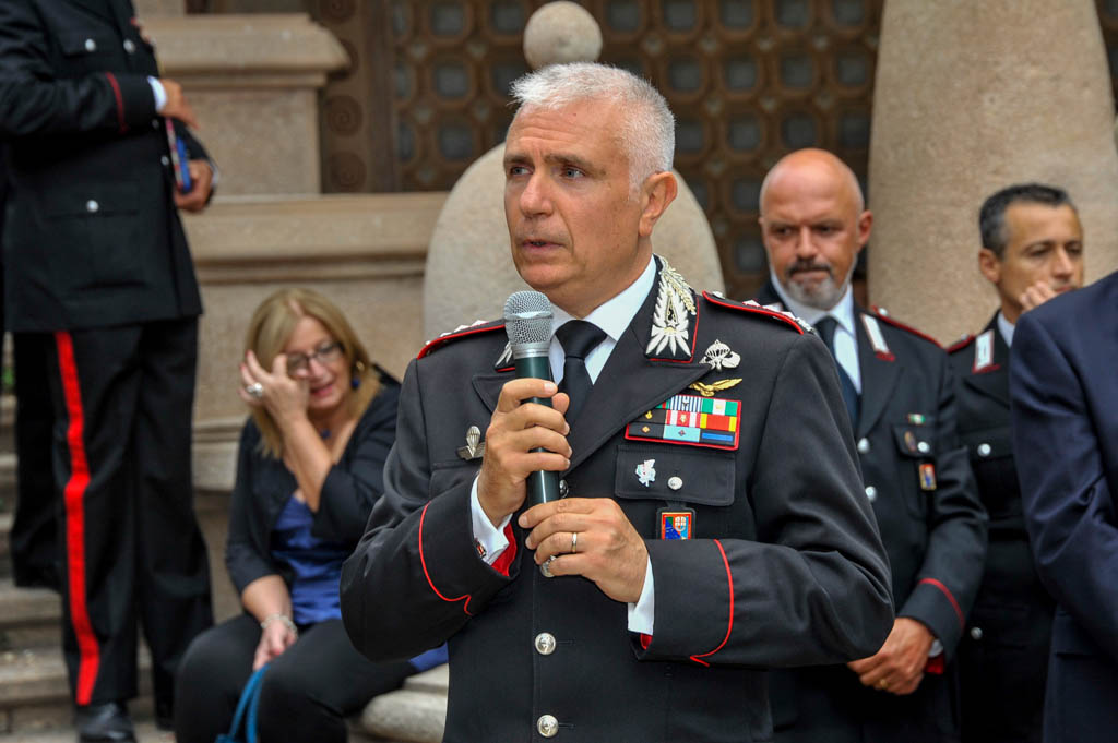 “Questo saluto coincide con un lutto che sta toccando la nostra nazione – ha esordito Zarbano – un disastro che ha portato lutti non solo a chi li vive in prima persona ma a tutta l’Italia perché potrebbe capitare a chiunque. Dunque anche chi non era materialmente lì si sente colpito perché non si possono prevenire i terremoti e i disastri. Non c’è una spiegazione, non c’è una ragione per tutto ciò. Il mio pensiero va a queste persone che in questi minuti sono presenti ai funerali dei loro cari. Ciò detto voglio ringraziare tutti quanti voi, in prima persona il mio comandante perché non è solito che il comandante regionale vada a questo genere di eventi, di saluti e io sono orgoglioso, contento e felice di ciò. Orgoglioso sia come militare, come comandante e come persona. Sono orgoglioso di aver comandato un provinciale e tenuto in considerazione dai miei comandanti e gli alti vertici dell’Arma perché anche se siamo in zona di confine non siamo lontani dal cuore di chi ci deve amministrare, siamo vicini”.