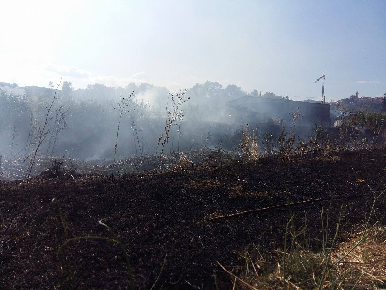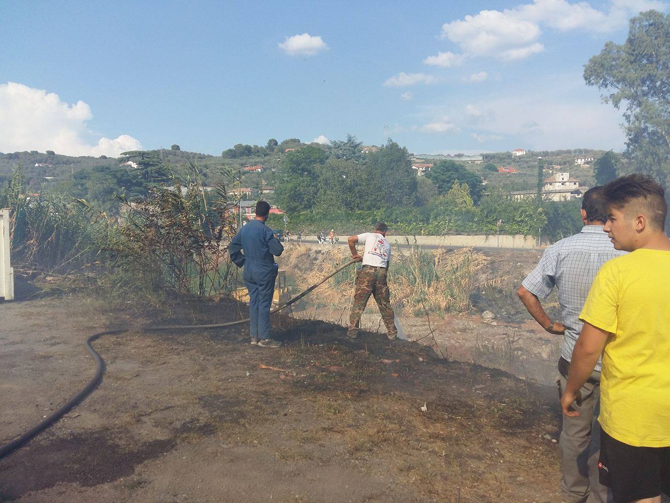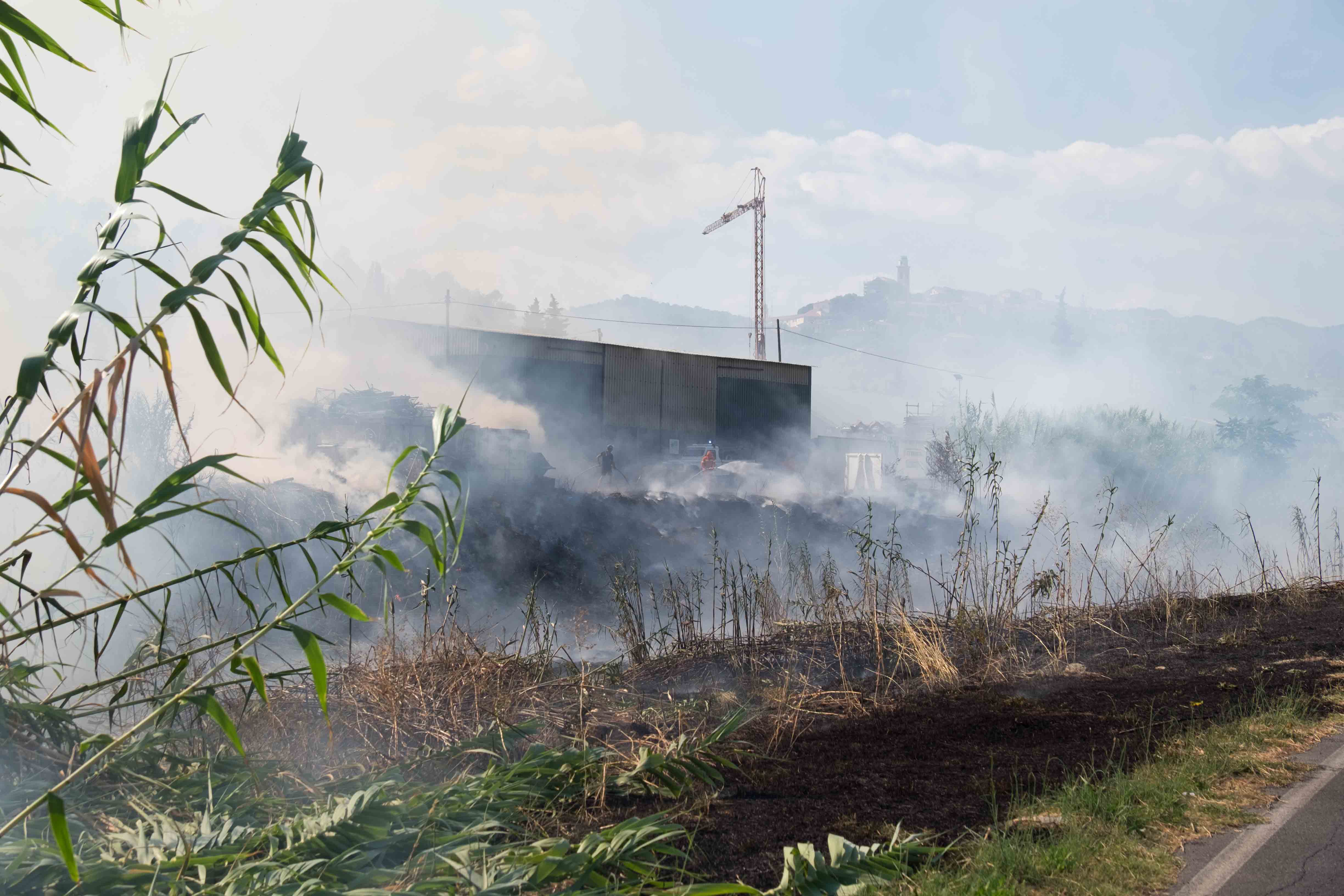 Diano Castello. Mobilitazione dei mezzi della Protezione civile (del Comune di Diano Castello) e dei vigili del fuoco questo pomeriggio, attorno alle ore 16, per un incendio sull’argine destro del torrente San Pietro all’altezza negozio di serramenti “Mazzucco”.