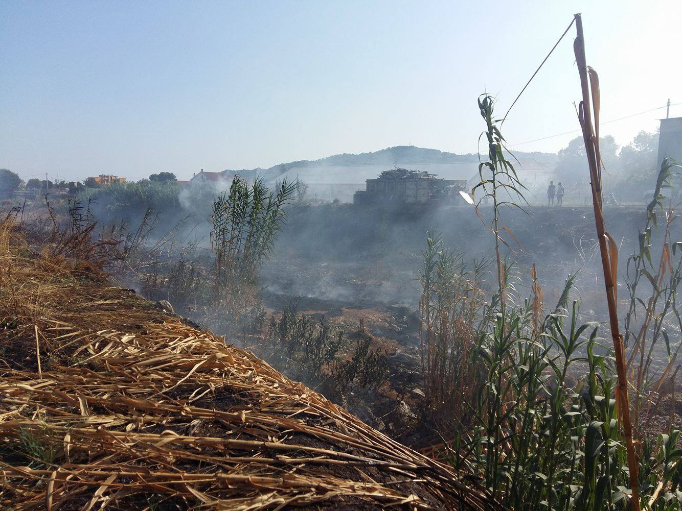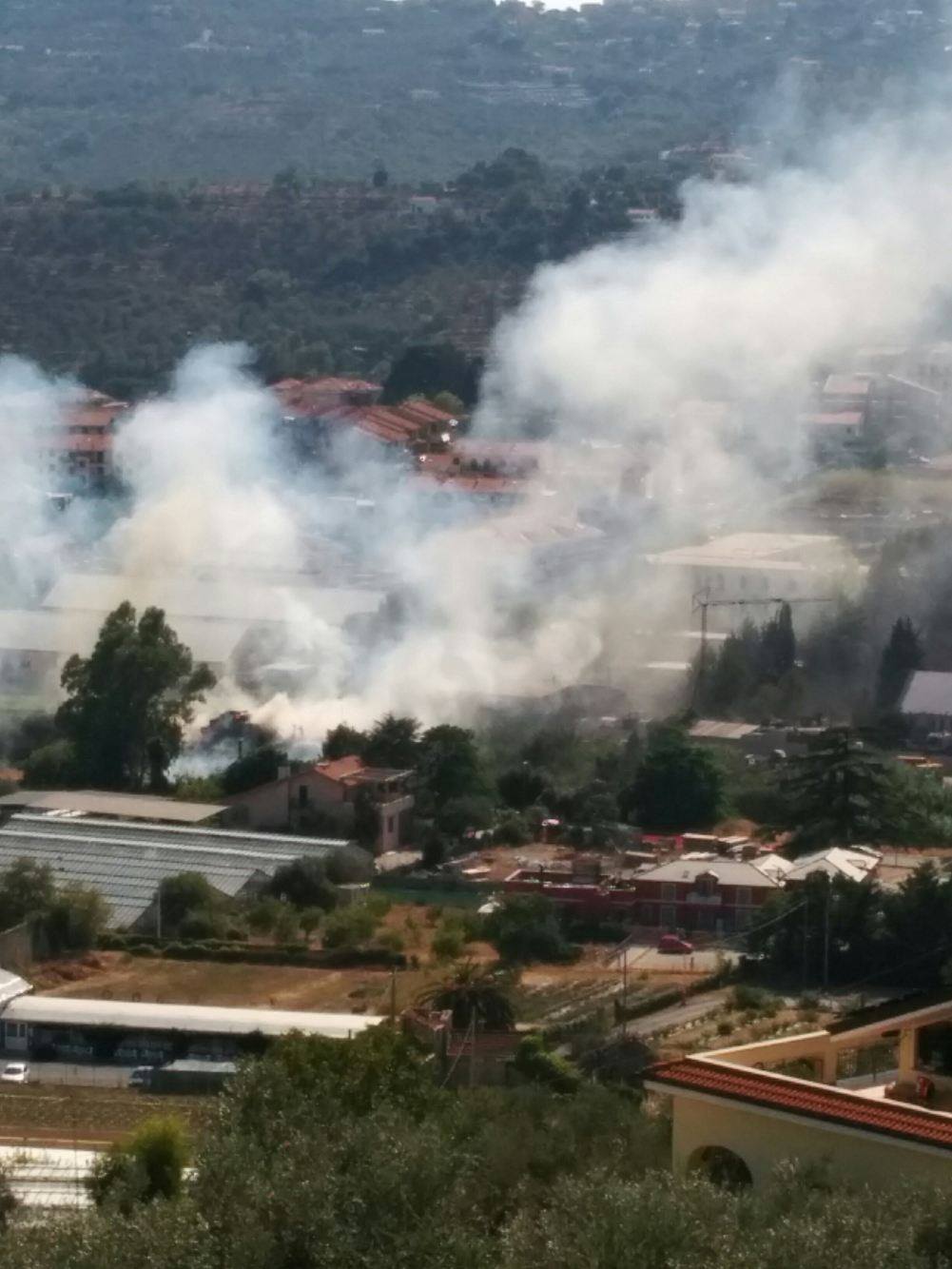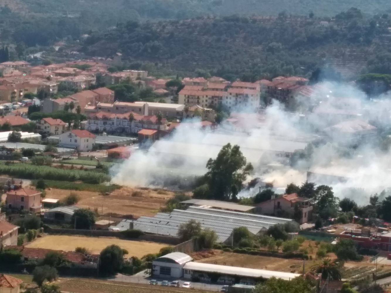 Diano Castello. Mobilitazione dei mezzi della Protezione civile (del Comune di Diano Castello) e dei vigili del fuoco questo pomeriggio, attorno alle ore 16, per un incendio sull’argine destro del torrente San Pietro all’altezza negozio di serramenti “Mazzucco”.