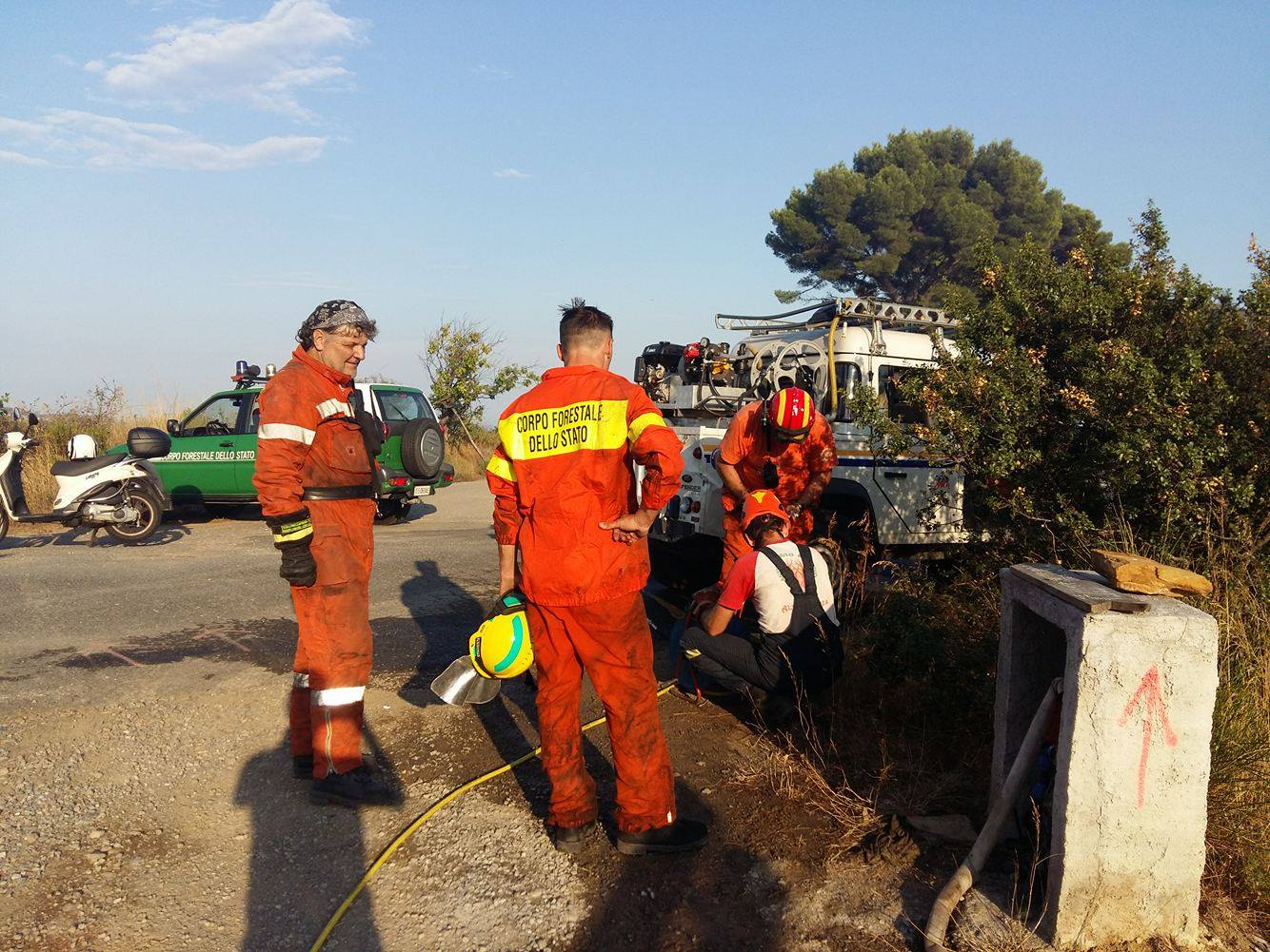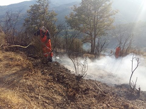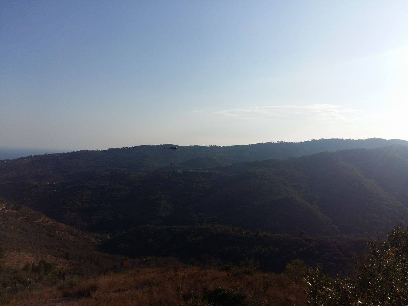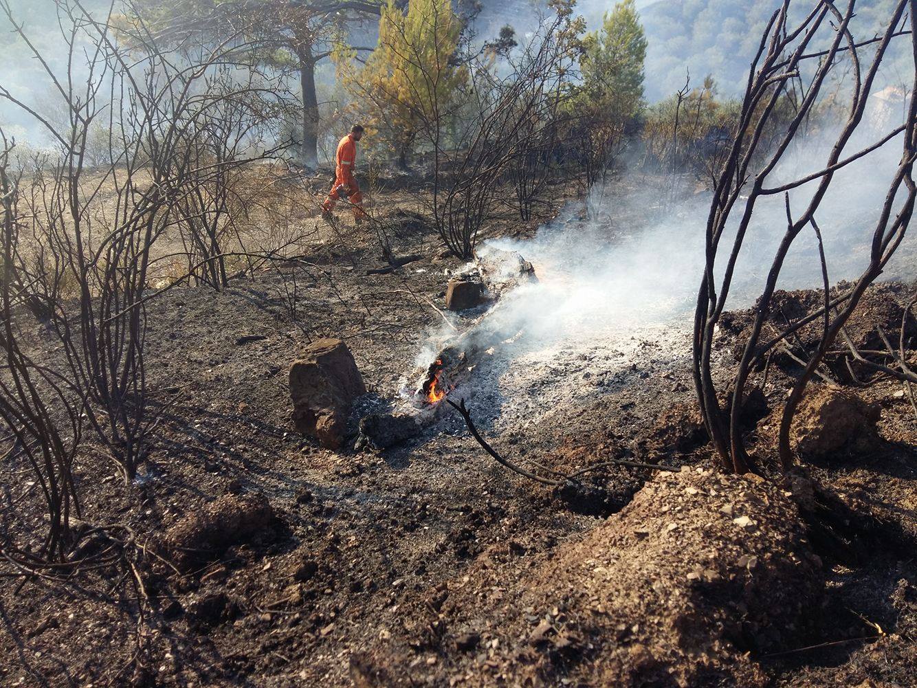 Imperia. Giornata calda sul fronte incendi per la protezione civile e per il corpo forestale dello Stato che da questo pomeriggio stanno lavorando per domare un vasto incendio che ha interessato località “5 Burche” subito sopra a Civezza.