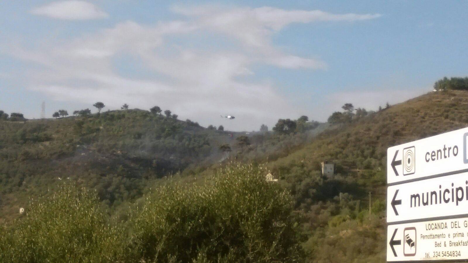 Un incendio di cui non si conoscono ancora le origini, ma che ha costretto i soccorritori a fare evacuare una famiglia che risiede al centro della collina andata in fiamme. Sul posto è intervenuto l’elicottero della Protezione Civile che ha sganciato acqua per alcune ore.