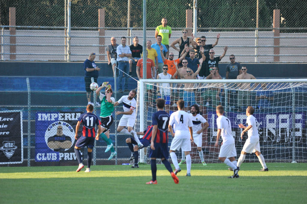 I neroazzurri, in vantaggio con un’autorete di Tona, si sono fatti immediatamente raggiungere dagli ospiti, in gol con Di Pietro. La prima frazione, nonostante un netto predominio dell’Imperia, si è chiusa sul risultato di 1-1.