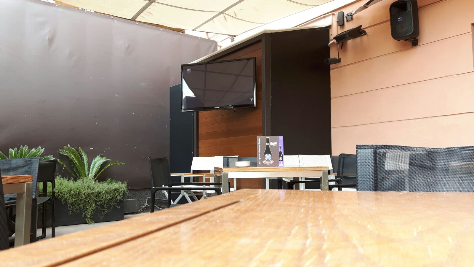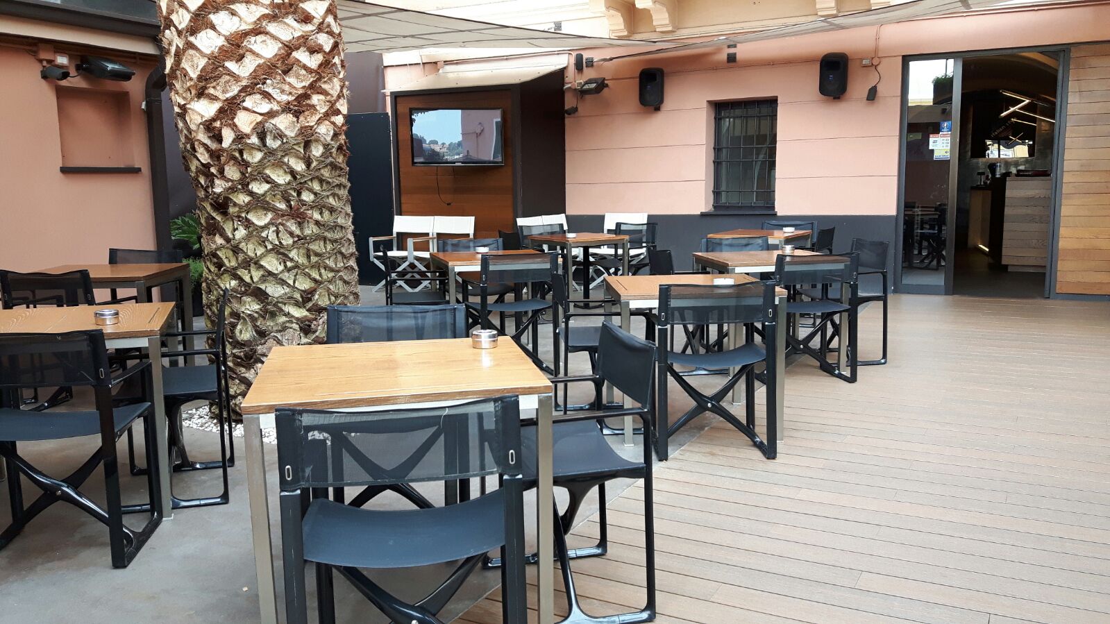 Un locale con tre aree differenti, al coperto, all’interno della corte con giardino interno e il dehor esterno comodo e protetto con frangivento.
