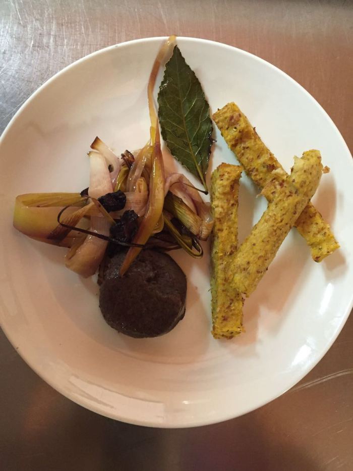 § Pate beluga con porri ai mirtilli e yogurt di cocco