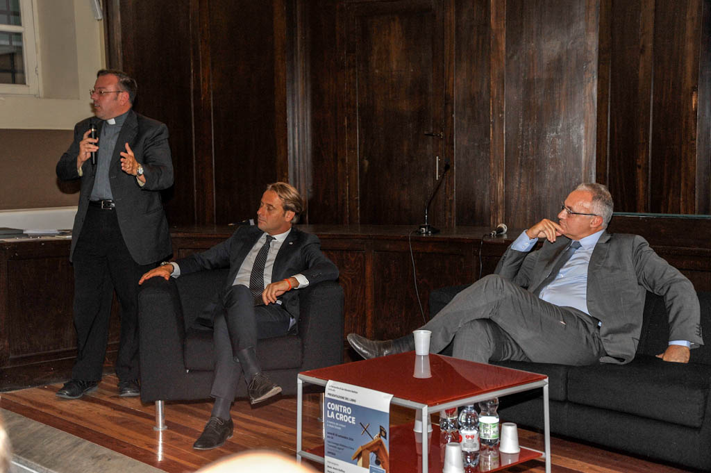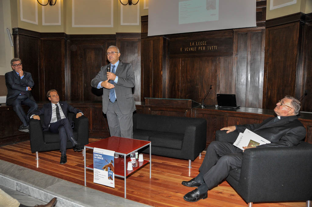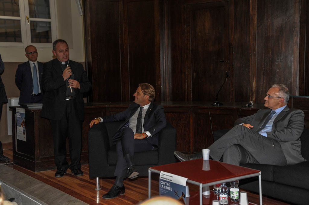 Imperia. Sala piena in biblioteca questo pomeriggio per la presentazione del libro “Contro la Croce” alla presenza dell’auto, l’ex Ministro della Difesa Mario Mauro. Presenti in sala anche l’assessore regionale Marco Scajola e Monsignor Mario Ruffino, parroco della chiesa di San Giovanni Battista a Imperia.
