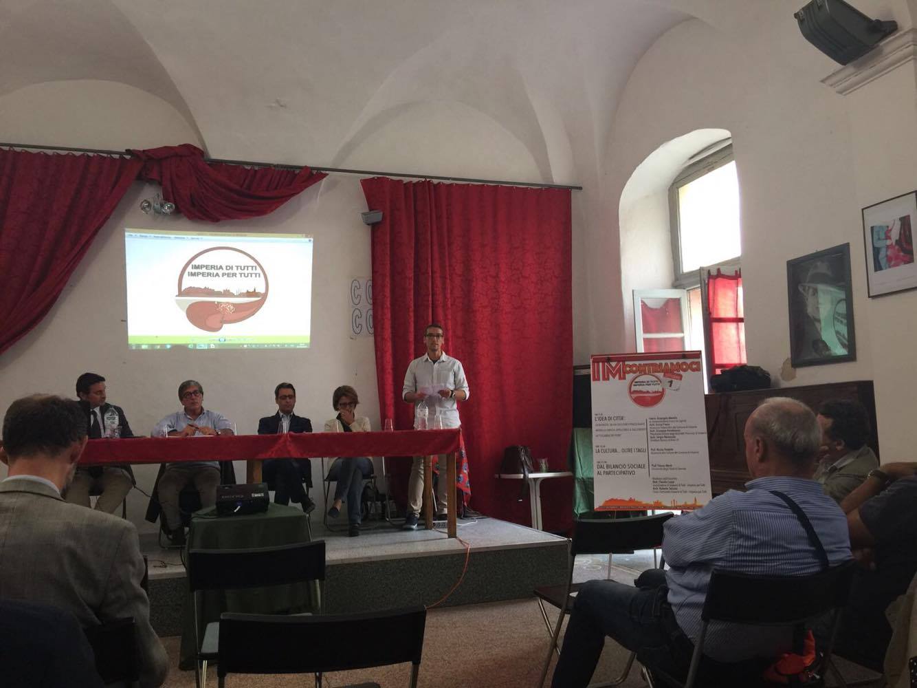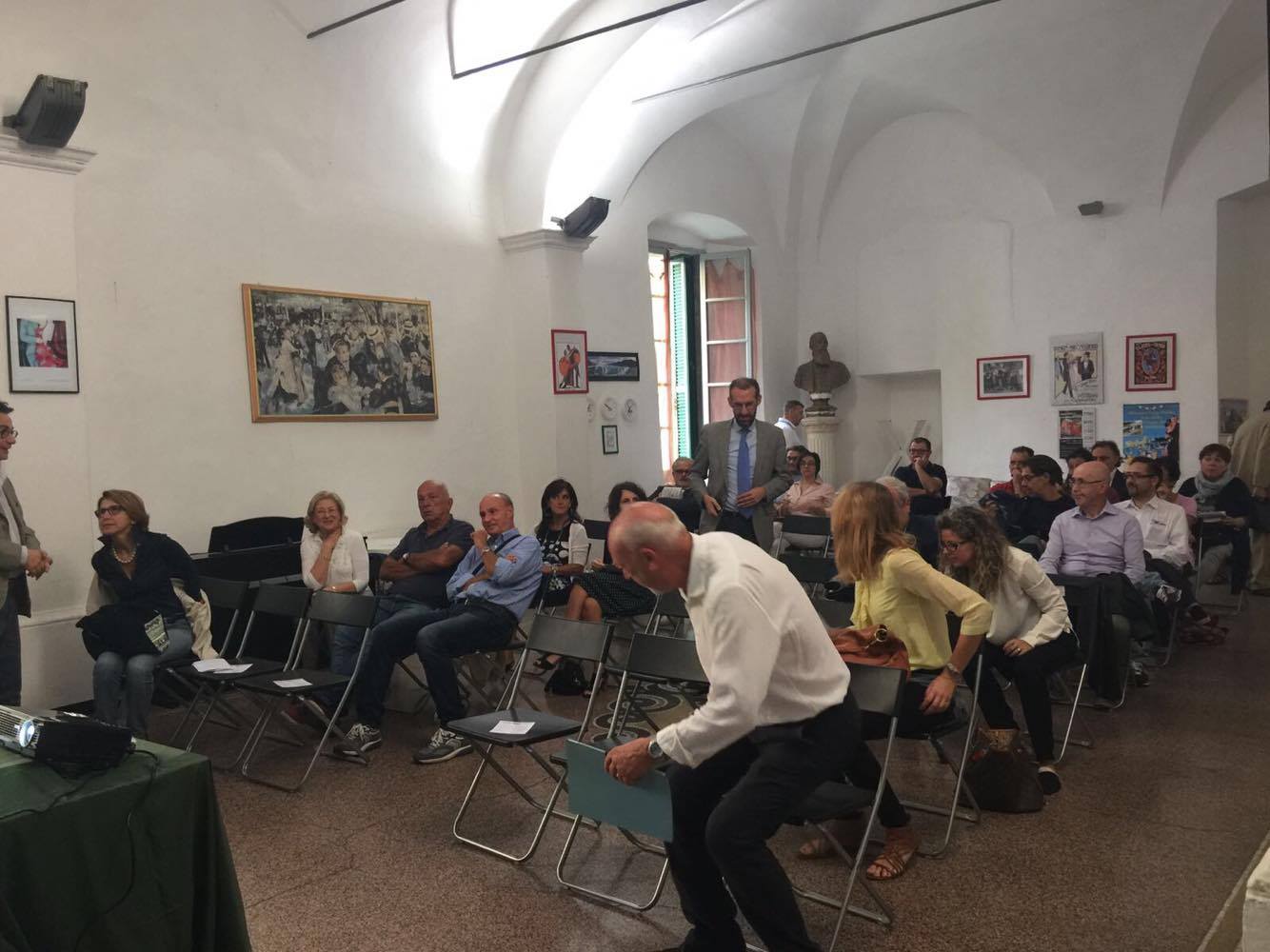 Imperia. Sala gremita questa mattina a Porto Maurizio nella sede della società operaia per l'”IMcontro” organizzato dal movimento “Imperia di Tutti – Imperia per Tutti” aperto alla cittadinanza in cui si sono affrontate diverse tematiche relative allo sviluppo della città: la mobilità, riutilizzo ex area Italcementi, pista ciclabile, cultura e bilancio sociale. Presenti in sala il Geom. Arcangelo Merella (ex Amministratore Unico Ire Liguria), Arch. Enrica Fresia (Assessore Urbanistica del Comune di Imperia), Arch. Giuseppe Panebianco (Presidente Ordine degli Architetti Provincia di Imperia), Arch. Sergio Raimondo (Direttore Tecnico di Area 24), Prof. Nicola Podestà (Assessore alla Cultura del Comune di Imperia) e il Prof. Franco Manti (Università degli Studi di Genova). Mediatori dell’incontro il Dott. Claudio Luppi (coordinatore di Imperia di Tutti – Imperia per Tutti) e l’Arch. Roberto Saluzzo (Consigliere Comunale Imperia di Tutti – Imperia per Tutti).