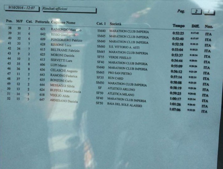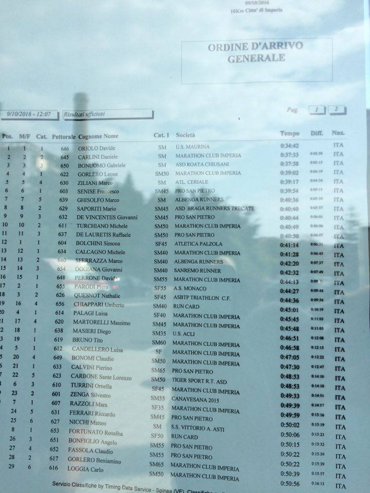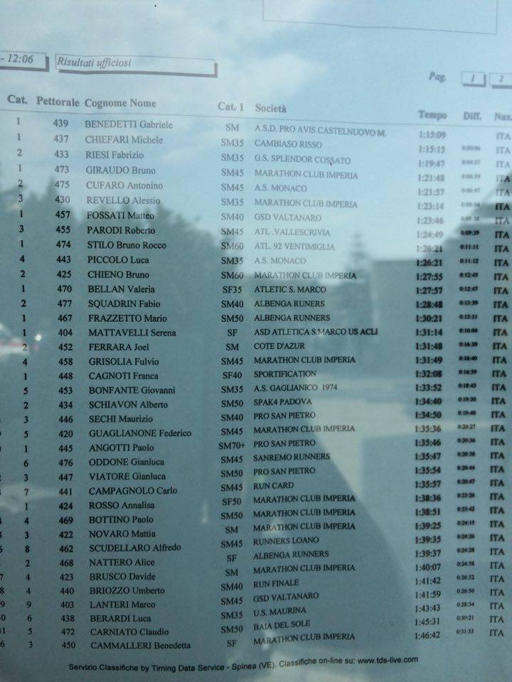 10 KM OPEN: 1° Davide Oriolo (Us Maurina), 2° Daniele Carlini (Marathon Club Imperia), 3° Gabriele Bonuomo (Asd Roata Chiusani).