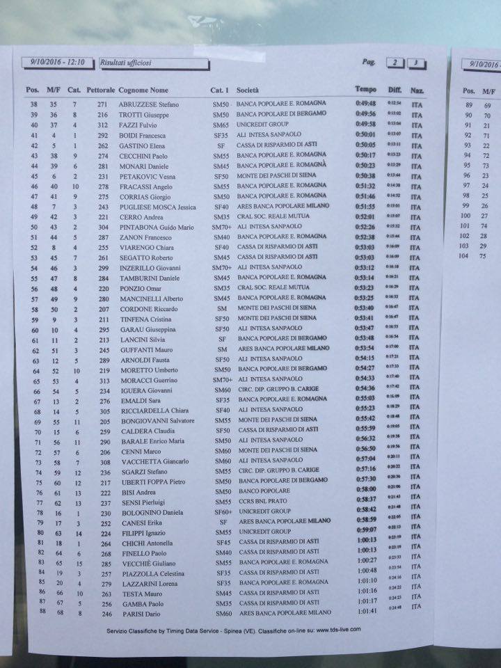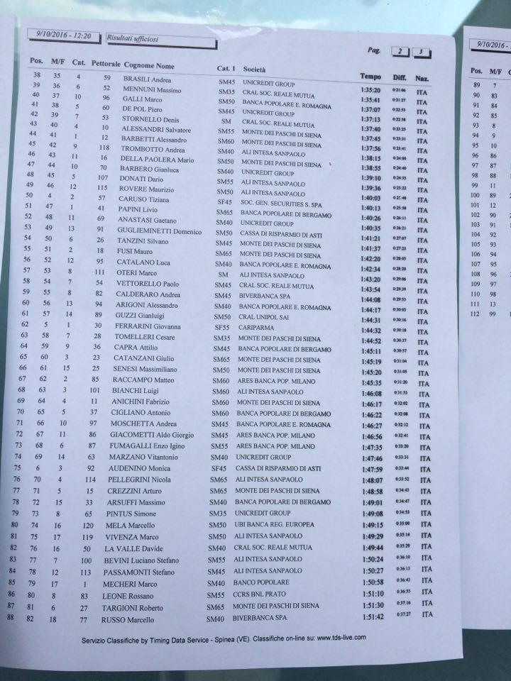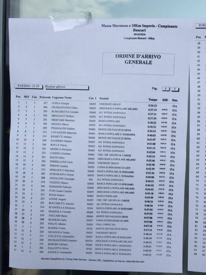 10 KM BANCARI: 1° Giorgo Costa (Unicredit Group), 2° Fabio Pietrantonio (Area Banca Popolare Milano), 3° Corrado Burgaretta (Ali Intesa San Paolo).