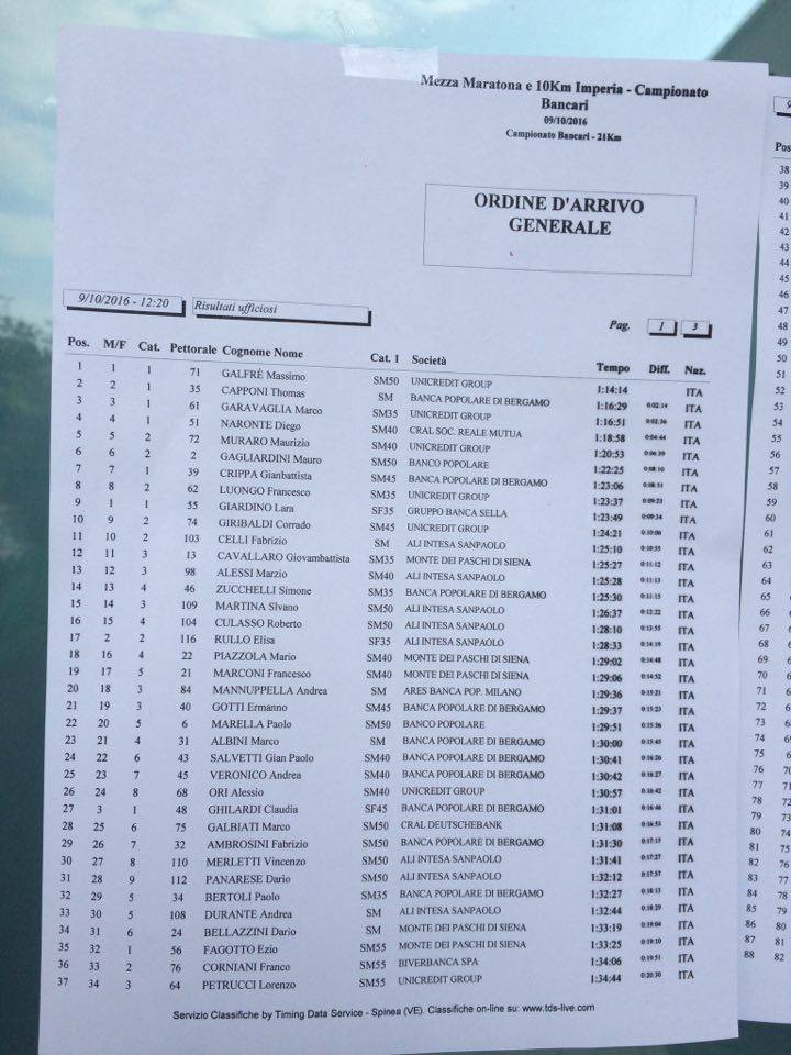 MEZZA MARATONA CAMPIONATO BANCARI: 1° Massimo Galfré (Unicredit Group), 2° Thomas Capponi (Banca Popolare di Bergamo), 3° Marco Garavaglia (Unicredit Group).
