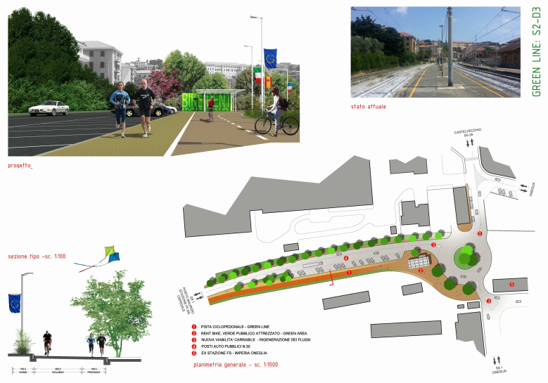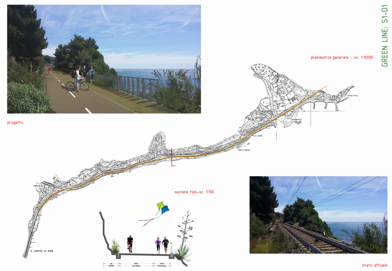 “Tra San Lorenzo al Mare al Prino la pista ciclabile passerà lungo la scogliera, poi entrerà a Piani attraverso un sottopasso. Proseguirà poi costeggiando la Fondura e, arrivati al passaggio a livello, si potrà nuovamente entrare verso il centro città, via Cascione, via degli Ulivi, Caramagna. A riguardo nel progetto è previsto un allargamento di via Canova per ricavare alcuni parcheggi”.