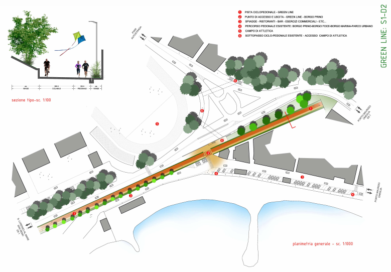 Un altro collegamento sarà nei pressi di Borgo San Moro, di fronte alla Farmacia, si potranno raggiungere Borgo San Moro e le ex Ferriere.