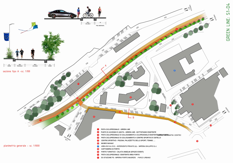 “Arrivati nei pressi della stazione di Porto Maurizio, sarà possibile raggiungere il museo navale, la ex Sairo e il Lungomare Vespucci, con il parco urbano e il porto turistico, attraverso una rampa di collegamento che passerà all’interno del sottopassaggio della stazione. Al progetto parteciperanno finanziariamente anche la società Le Vele (proprietaria Residenza Le Vele sul Lungomare Vespucci, ndr) e l’Imperia Sviluppo (realizzatrice progetto riqualificazione ex Sairo, ndr).