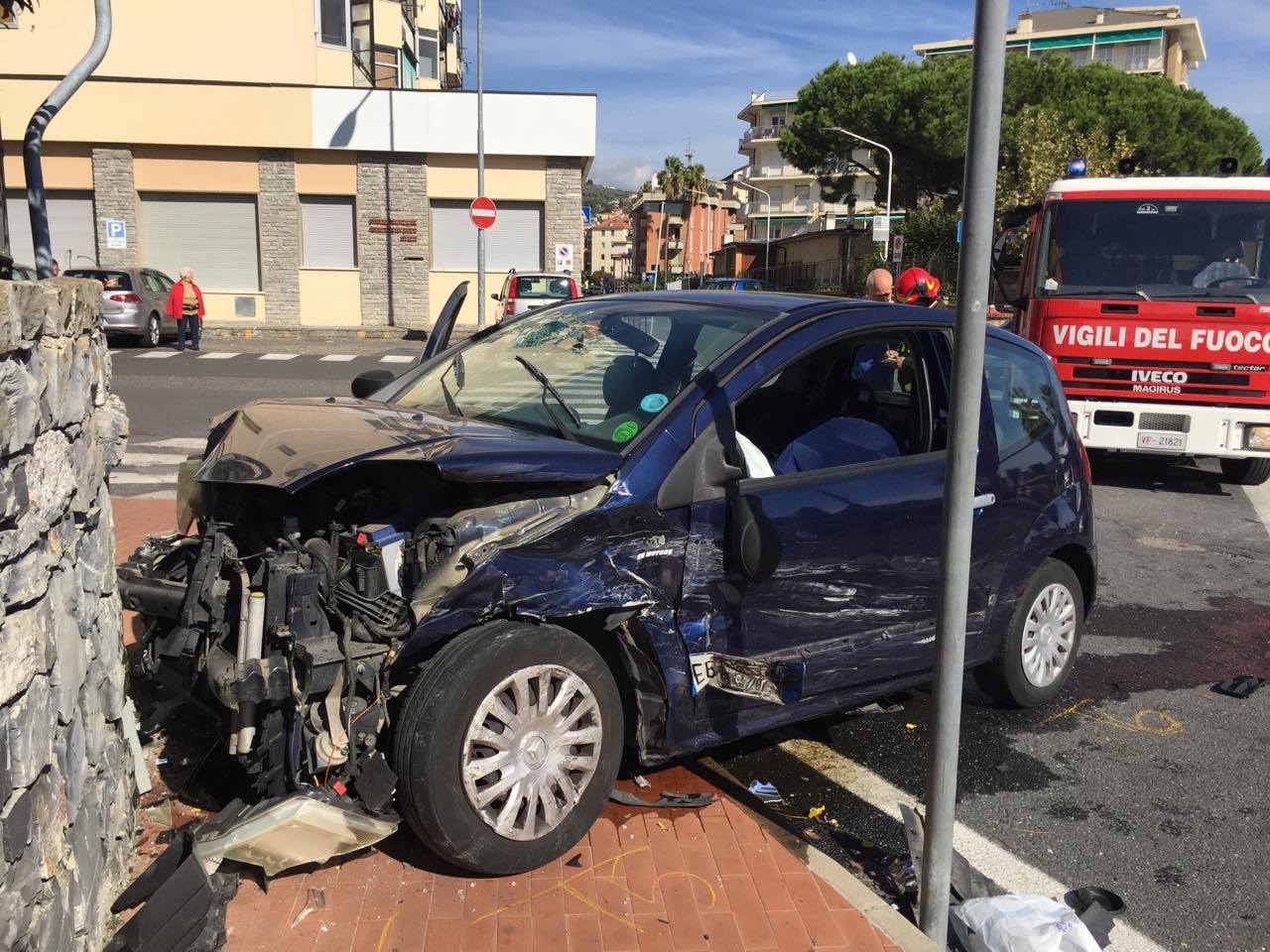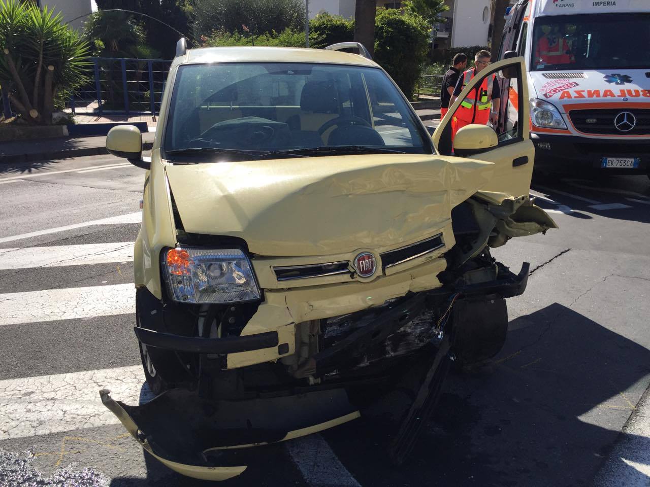 IMPERIA. Incidente stradale poco dopo le 13 sul lungomare Vespucci. Due auto, una fiat Panda guidata da un’anziana, e una citroen C2 guidata da un giovane si sono scontrate al centro della carreggiata lato monte in direzione Porto Maurizio. Lo scontro è stato violentissimo tanto da fare andare a sbattere la citroen, proveniente da Oneglia e diretta a Porto Maurizio contro un muro e la panda di arretrare di una decina di metri. Secondo una prima ricostruzione la panda si sarebbe immessa nella corsi opposta intenta a immettersi in via Giannetti ma non avrebbe rispettato la precedenza impattando così con la citroen che stava sopraggiungendo.