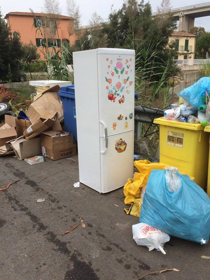 La prima segnalazione riguarda un grosso frigorifero che, invece di essere smaltito nel modo corretto, è stato abbandonato presso i cassonetti dei rifiuti situati in via Marte, zona Caramagna.