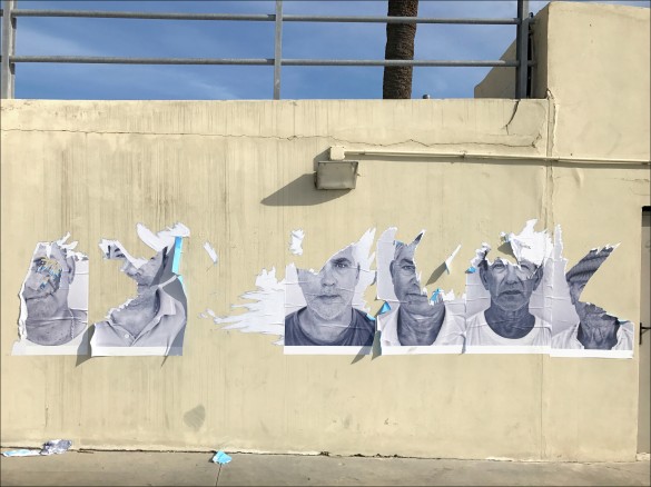 Mi sono stupito anche io a non sentirmi triste, come consapevole che tutto ciò sarebbe inevitabilmente successo, metafora perfetta di lavoratori che hanno avuto un minimo di notorietà ed onore ma poi sono ripiombati nell’inevitabile oscurità: chi ha fatto quello scempio in fondo mi ha fatto un favore, perchè ha raccontato con le sue mani di quanto sia facile cancellare la dignità di chi si fa un culo così, in mare tutte le notti. Non valgono nulla, neanche attaccati su un muro. Però le cose spesso succedono con un percorso tutto loro, e in questa distruzione la mano inconsapevole ha creato un’opera ancora migliore di tutte le mie, una vera opera d’Arte. Il viso di Orazio che emerge dal manifesto strappato, racconta la sua ostinazione, l’ostinazione e il coraggio di tutti quelli come lui”.