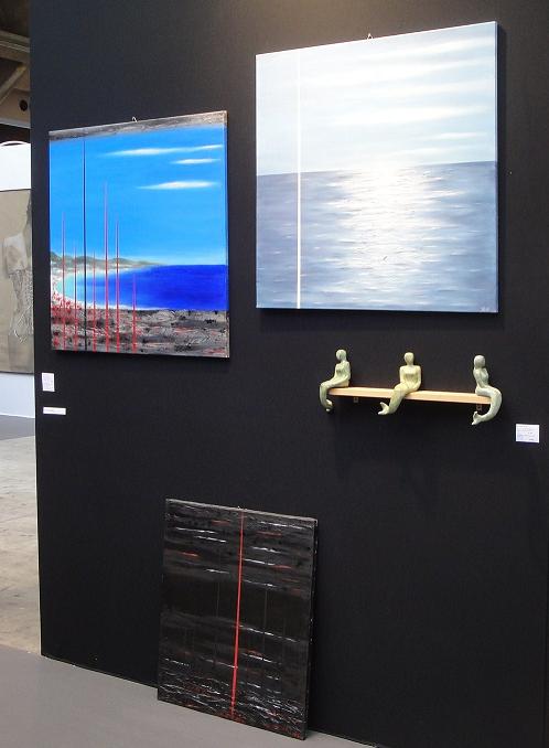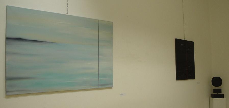 il delicato “Cielo/Mare GF- quiete” e altro “Cielo/Mare GF, alba-tramonto” dalle tonalità rasserenanti, oltre al dipinto astratto realizzato dall’artista dopo i tragici eventi a Parigi del 13 novembre scorso “stato d’animo 13-11-15”.