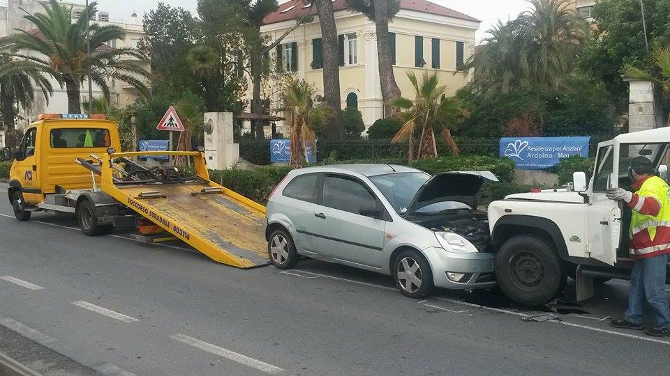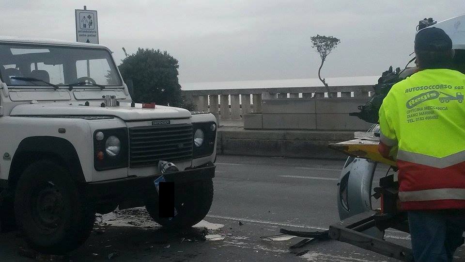 Violento scontro frontale questa mattina a Diano Marina, sull’Aurelia, di fronte alla sede della Croce Rossa. Due auto, una Ford Fiesta e un Land Rover Defender, si sono scontrate, dopo che la prima, per motivi ancora in fase di accertamento, ha invaso la corsia opposta.