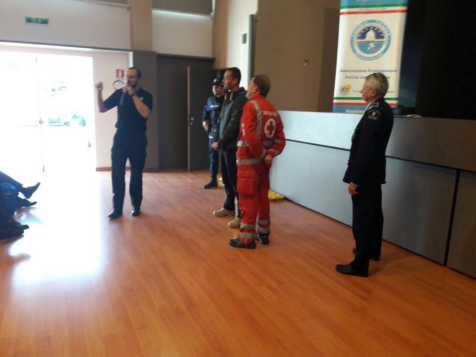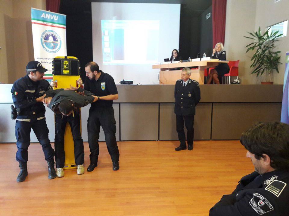 Abbiamo ospitato un istruttore, un Ufficiale della Polizia Locale di Napoli, Curti Giardina Cristiano, che si occupa da anni di questa scuola di formazione, il quale, dopo aver illustrato i vari protocolli che usano sia a Napoli sia a livello Nazionale, ha proseguito con dimostrazioni pratiche. Sono state rielaborate scene di persone che devono essere trasportate via, ma che non collaborano, elaborando diverse ipotesi di interventi. Presenti anche ragazzi della Croce Rossa con le barelle, proprio come se fosse un caso reale. Il tutto è stato quindi molto interattivo.