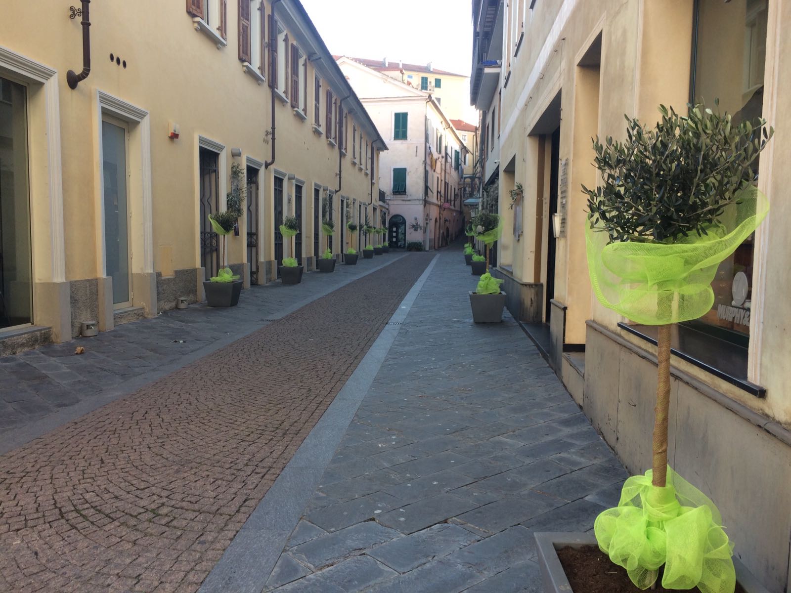 Gli alberi sono stati addobbati a tema con l’evento Olioliva che prende il via oggi per le strade di Oneglia, ma sono già pronte anche le decorazioni natalizie con cui gli alberi saranno decorati da dicembre in poi.