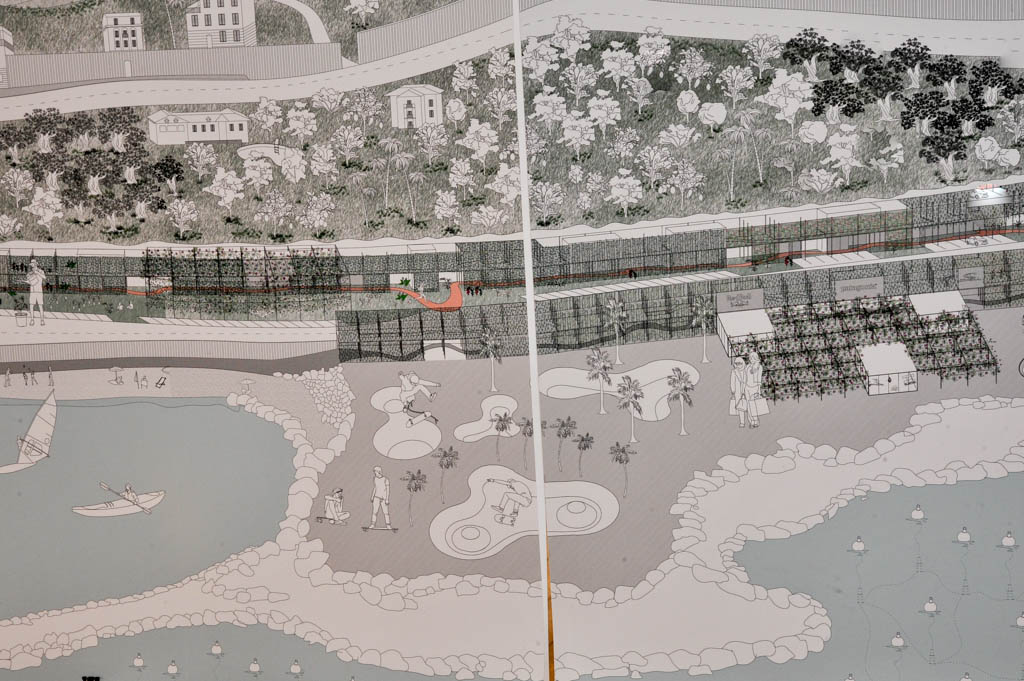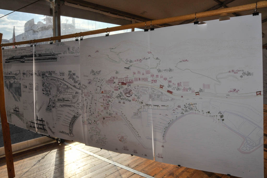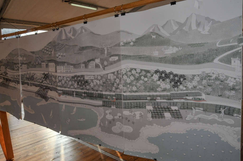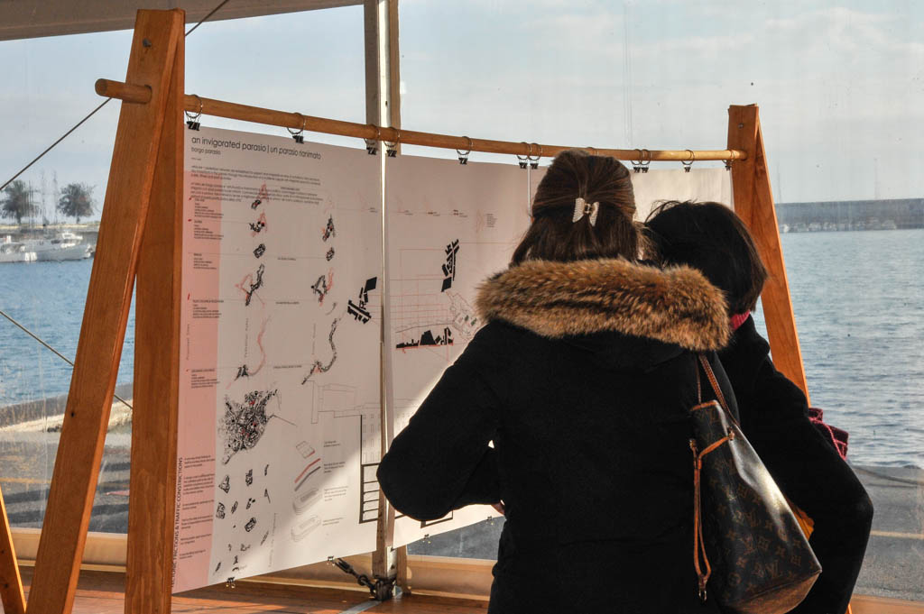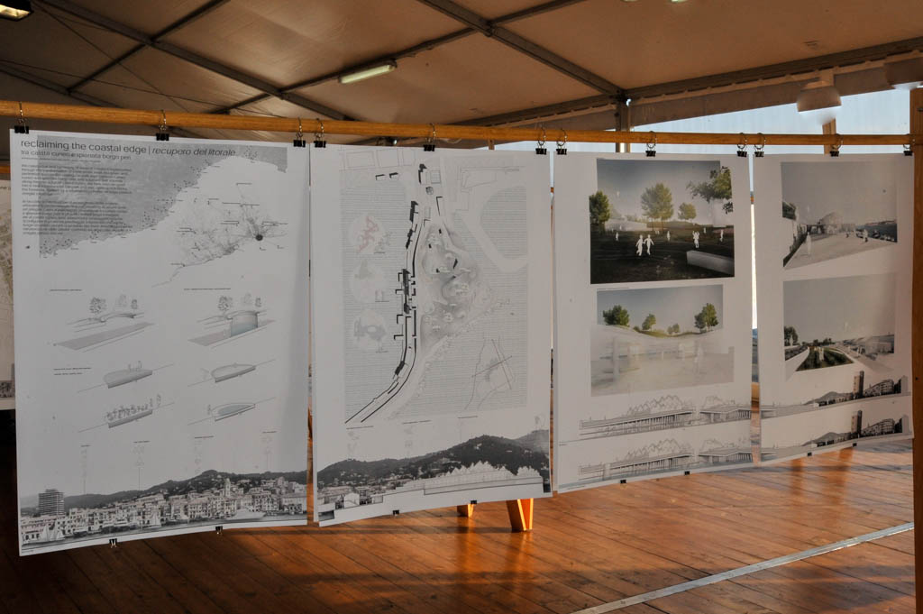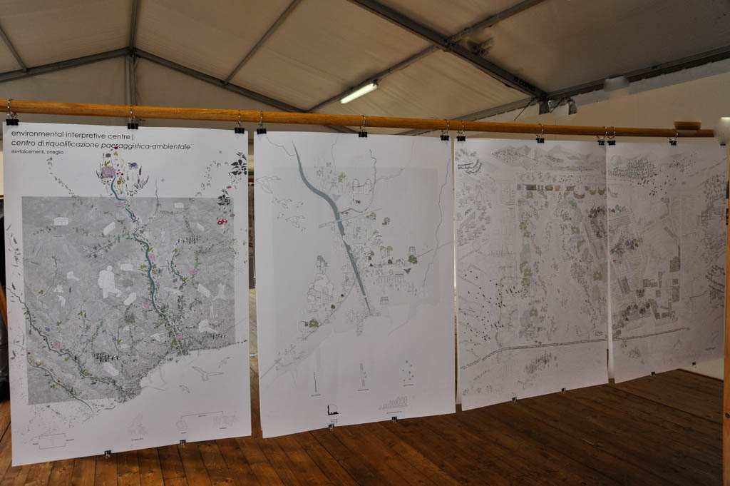Sono esposti circa venti progetti che illustrano svariate proposte di riqualificazione. Tra queste, una foresta urbana alla Marina, un centro per l’incentivazione di prodotti regionali all’ex Italcementi, con una ipotetica dilatazione del limitrofo stabilimento Fratelli Carli, un edificio a parcheggio multipiano fortemente integrato con gli spazi pubblici al Parasio, destinato ad attività commerciali e all’esercizio fisico, la vecchia ferrovia trasformata in un corridoio verde con pista ciclabile e metropolitana leggera, affiancato da attività a vivaio per la coltivazione e vendita di piante e fiori e da spazi comunitari con aree giochi e sport.