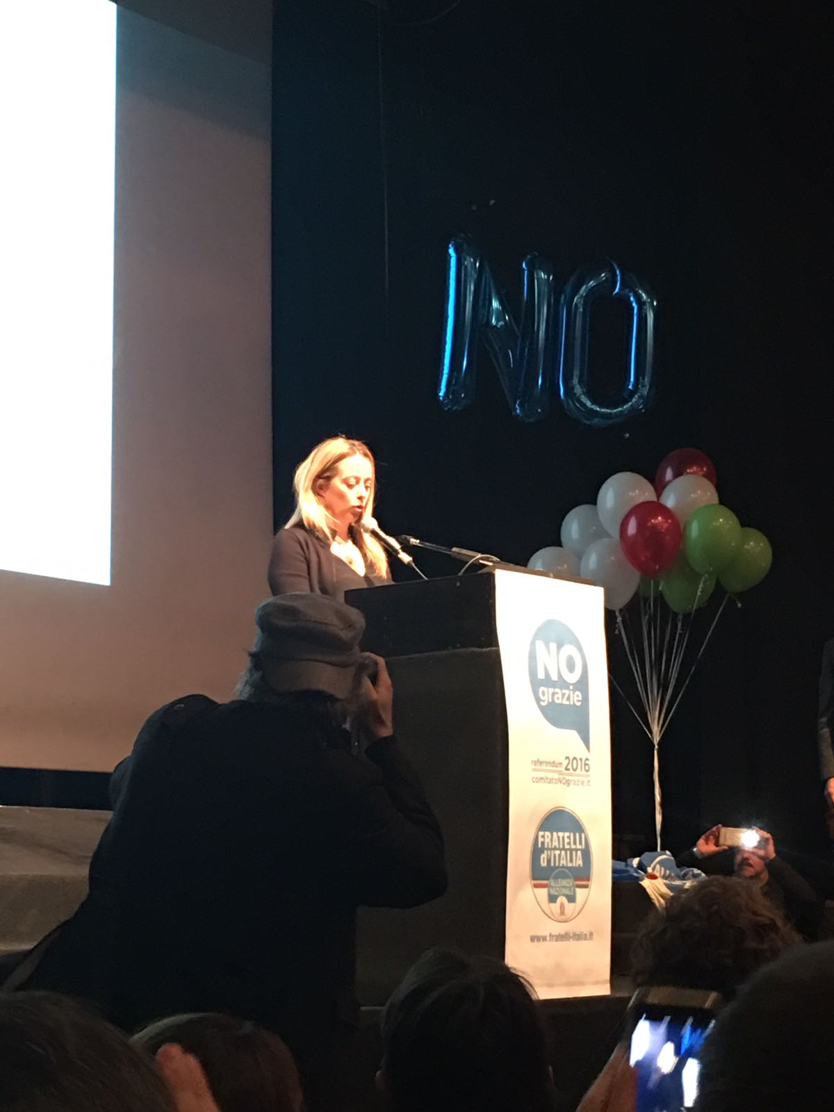 “Teatro gremito e pubblico da tutto esaurito anche in piedi per sentire le molteplici ragioni per bocciare questa scellerata riforma – si legge in una nota – Ancora una volta Fratelli d’Italia – Alleanza Nazionale dimostra di saper stare vicino ai cittadini e gli iscritti e simpatizzanti della nostra Provincia testimoniano che la Politica con la P maiuscola è questa”.