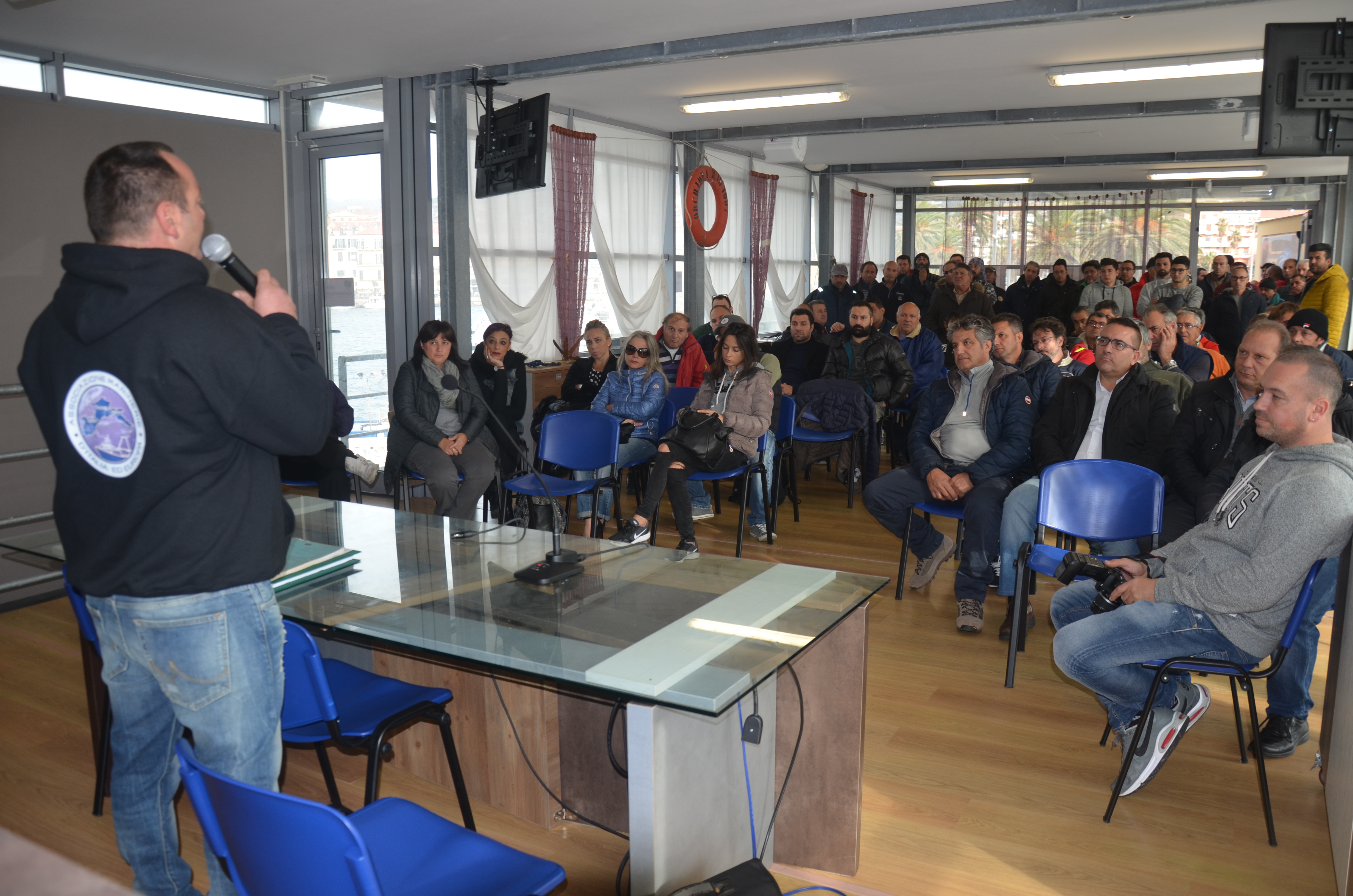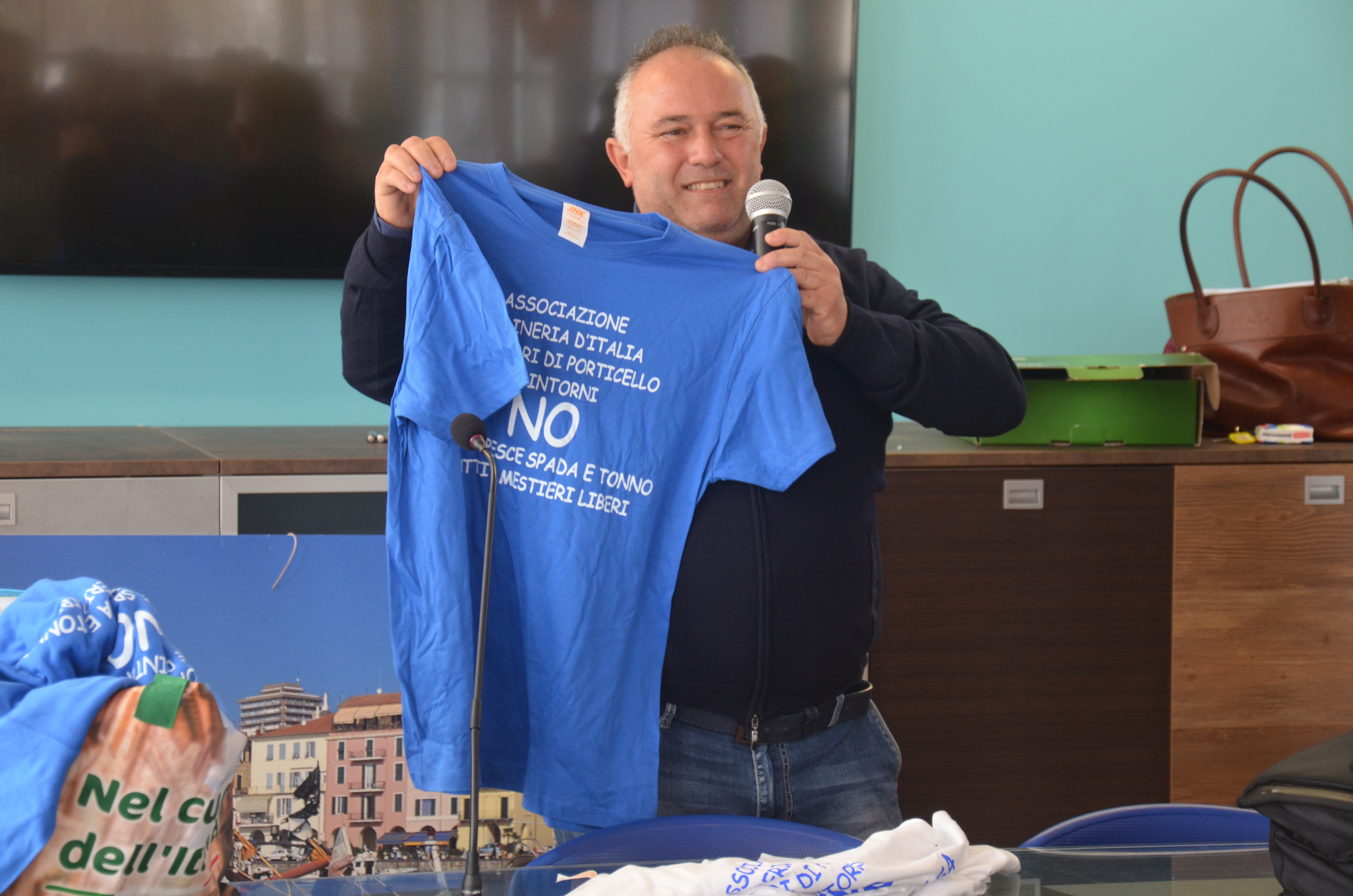 “A Ponticello, Palermo, una marineria di 500 barche, sono riuscito a fare una riunione dal niente, ho invitato Francesco Calderoni. Quando abbiamo finito la riunione, i giovani mi hanno chiesto ‘Ora cosa dobbiamo fare?’. Volevamo associarci all’associazione, ma non è questo il loro scopo. Vogliamo unirci a tutte le altre marinerie d’Italia, per questo siamo qui oggi. Chiediamo una grande collaborazione da tutti voi, è necessario essere uniti, crederci davvero, per ottenere dei risultati“.