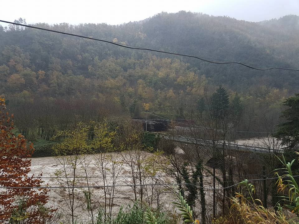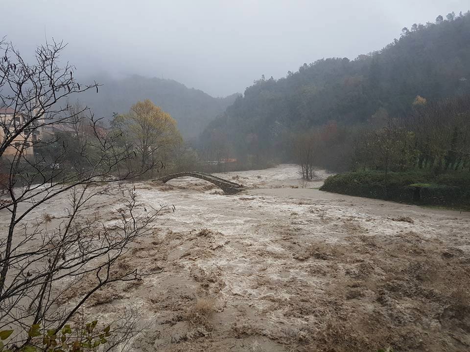 La pioggia incessante continua ad abbattersi nell’entroterra di Imperia, dove l’Allerta Meteo Rossa è stata prolungata fino alle 12 di domani, venerdì 25 novembre. Le foto ritraggono il fiume Arroscia che attraversa Pieve di Teco, la zona Pieve centro, le località Paperera e Perinetti e il ponte di Borghetto D’Arroscia. La Strada Statale 28 è chiusa a partire da Pornassio in direzione Piemonte, e Ormea per ora non si può raggiungere.