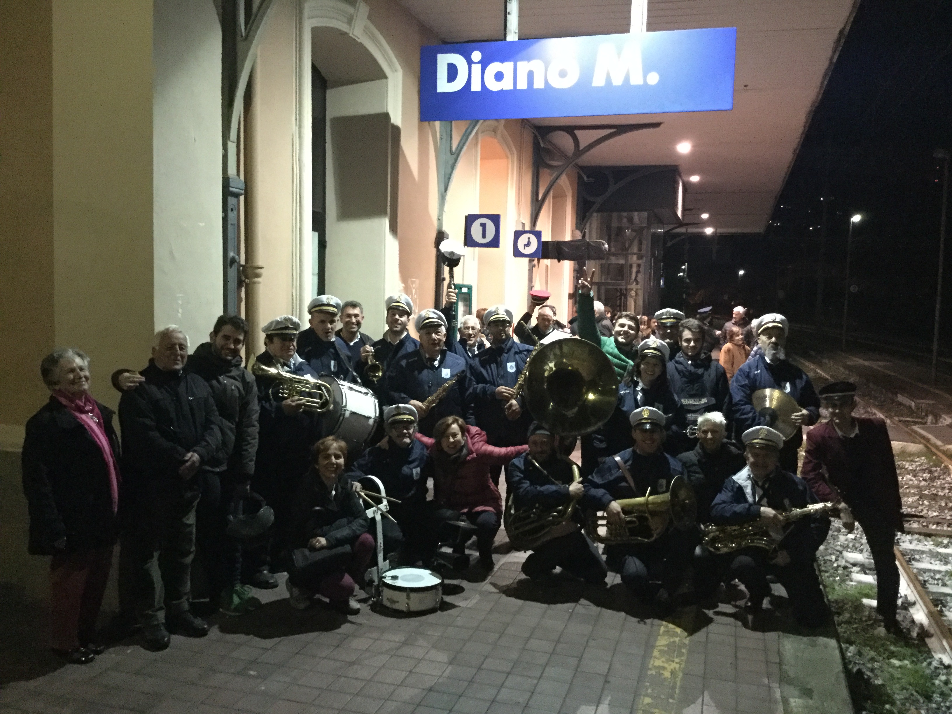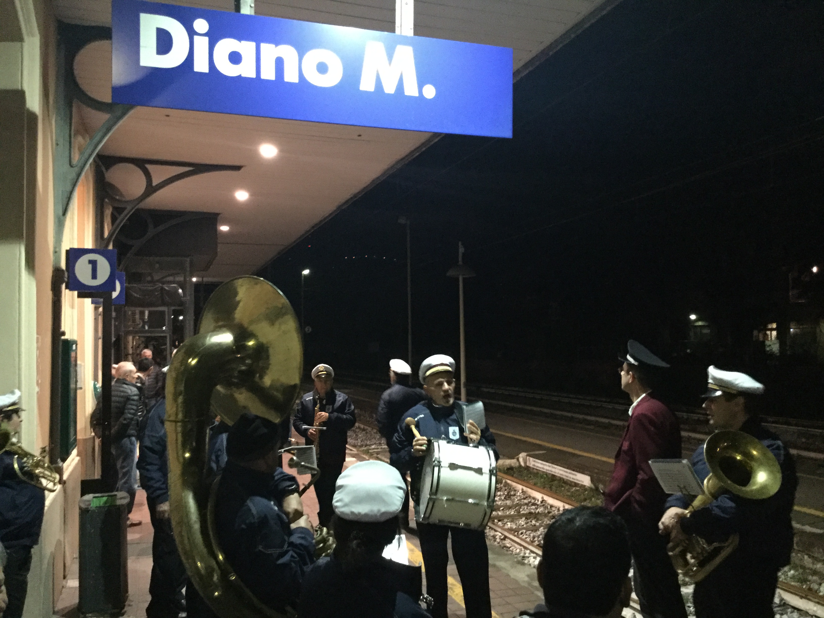 Diano Marina e il suo golfo non saranno più attraversati dalla linea ferroviaria, per questo i componenti della Banda Città di Diano Marina hanno voluto essere presenti a questo storico appuntamento, celebrando il passaggio dell’ultimo treno, così come hanno fatto uno gruppo di nostalgici anche a Imperia, in attesa dell’apertura della nuova ferrovia, fissata per l’11 dicembre.
