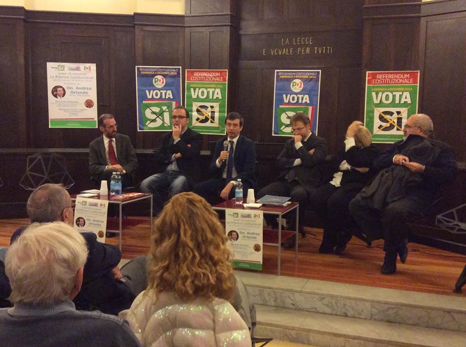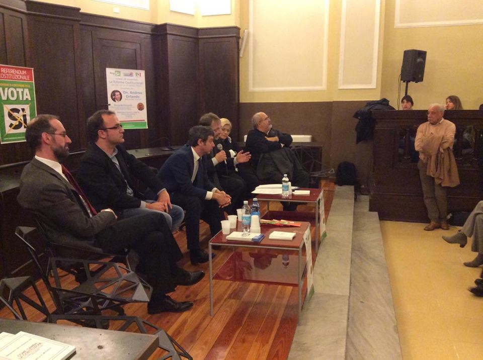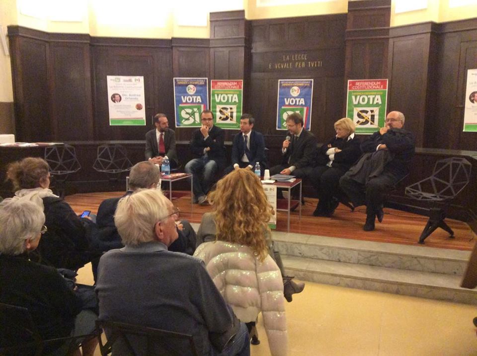 Si è tenuto questa sera, presso la sala convegni della Biblioteca Civica di Imperia, l’atteso incontro organizzato dal Partito Democratico con il Ministro della Giustizia Andrea Orlando al sostegno del SI al referendum costituzionale. Sul palco allestito per l’occasione anche la senatrice Donatella Albano, il consigliere regionale Giovanni Barbagallo, il presidente della Provincia Fabio Natta, il segretario provinciale del Pd Pietro Mannoni e Riccardo Ferrante, Professoria Ordinario di Storia delle Costituzioni e Codificazioni Moderne dell’Università degli Studi di Genova.