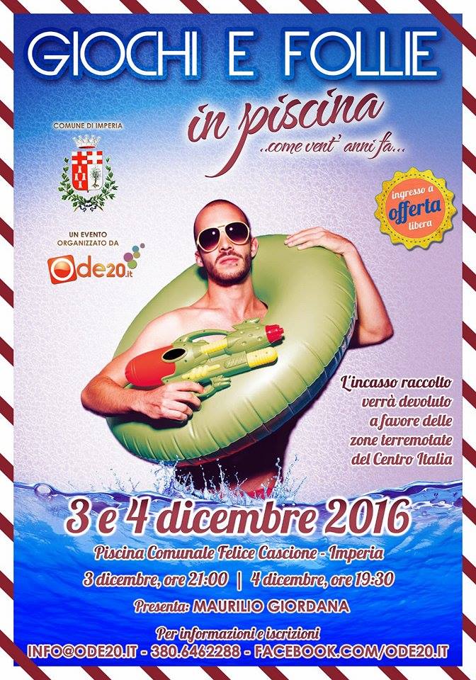 La manifestazione consiste in diversi giochi acquatici in cui le squadre dovranno gareggiare e si svolgerà presso la piscina comunale “Felice Cascione”, sabato 3 e domenica 4 dicembre, a partire dalle 21, per quanto riguarda il primo giorno, e a partire dalle 19.30 per il secondo.